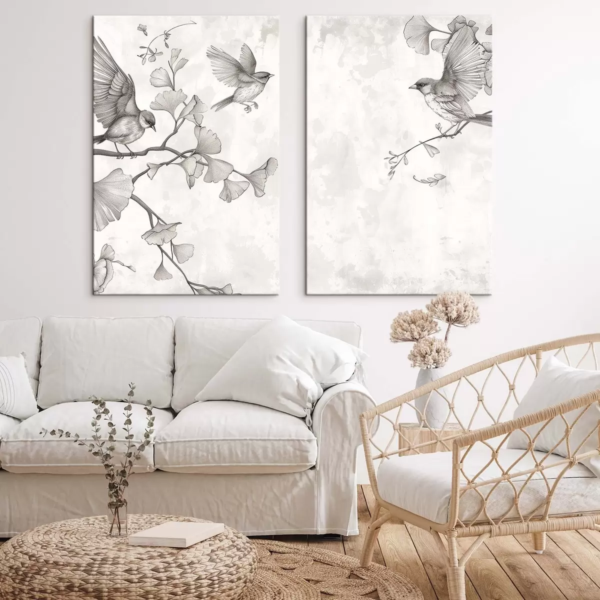 Cuadros Pájaros en las ramas de un ginkgo Nr m30380
