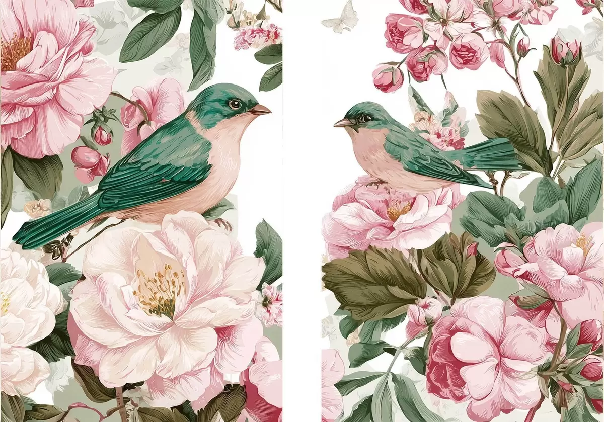 murales de pared Pájaros sobre delicadas flores rosas m30386