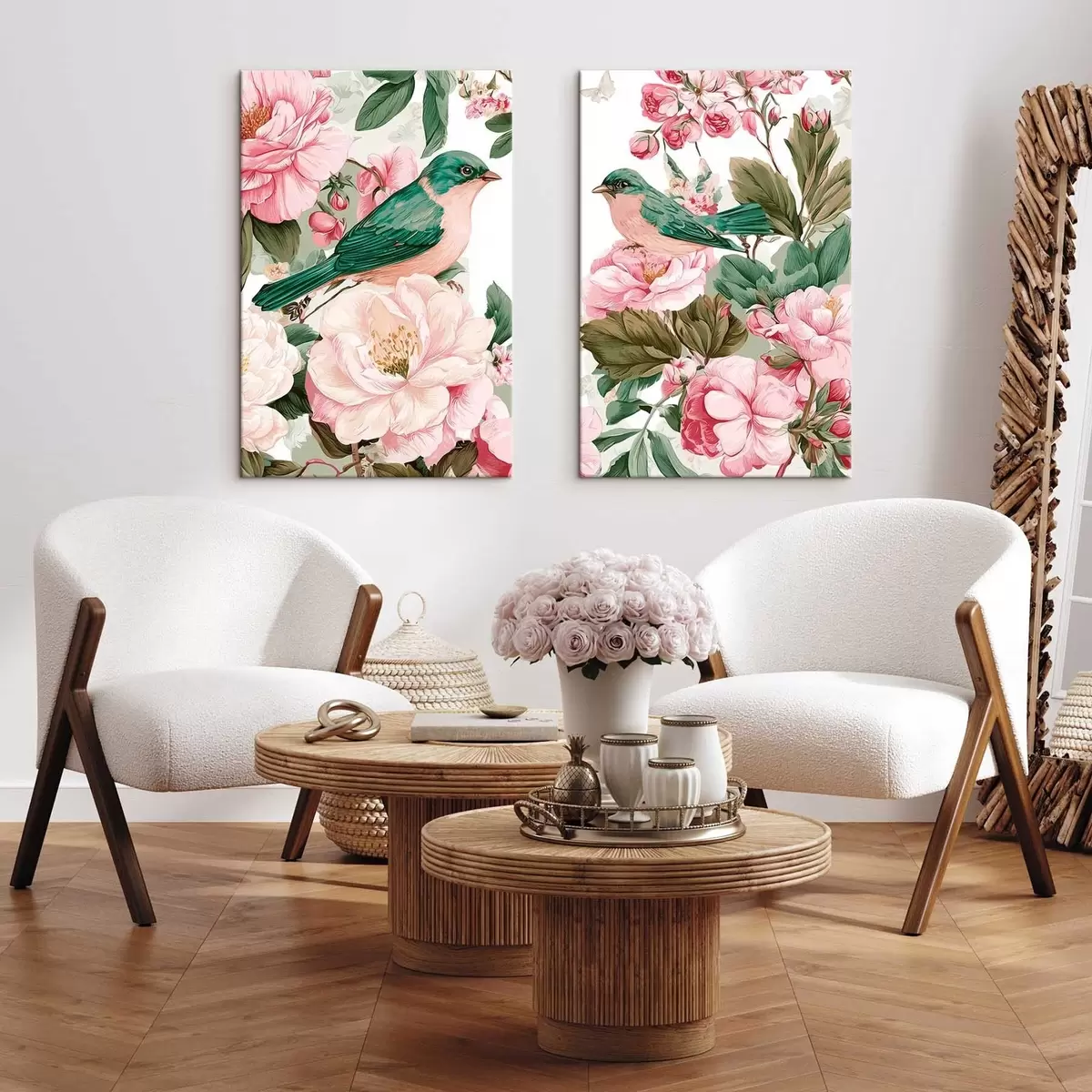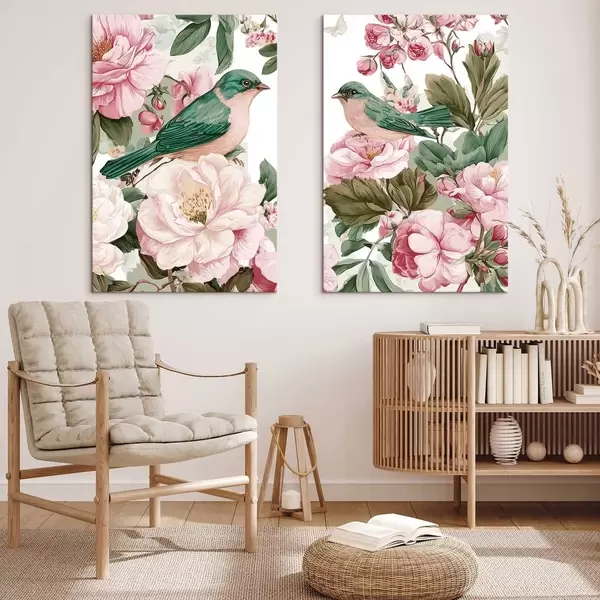 Cuadros Pájaros sobre delicadas flores rosas Nr m30386