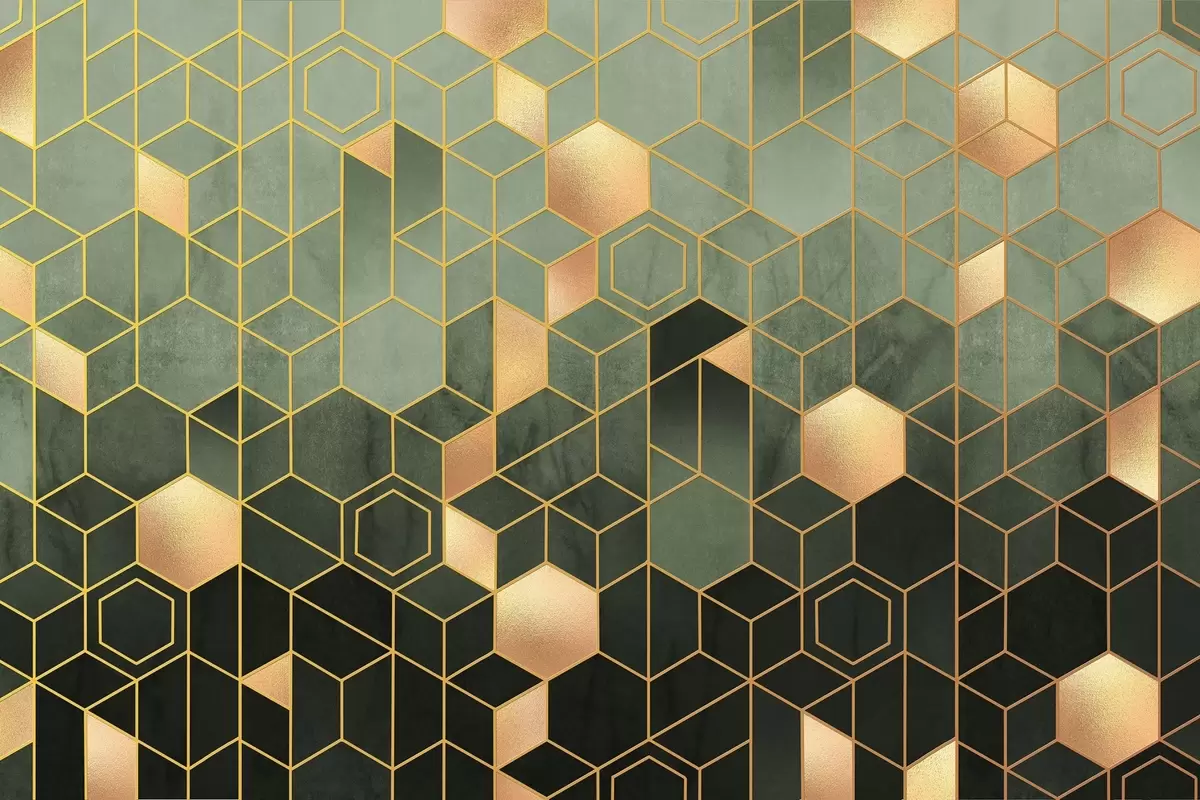 murales de pared Elegancia geométrica esmeralda y ámbar s36602v2