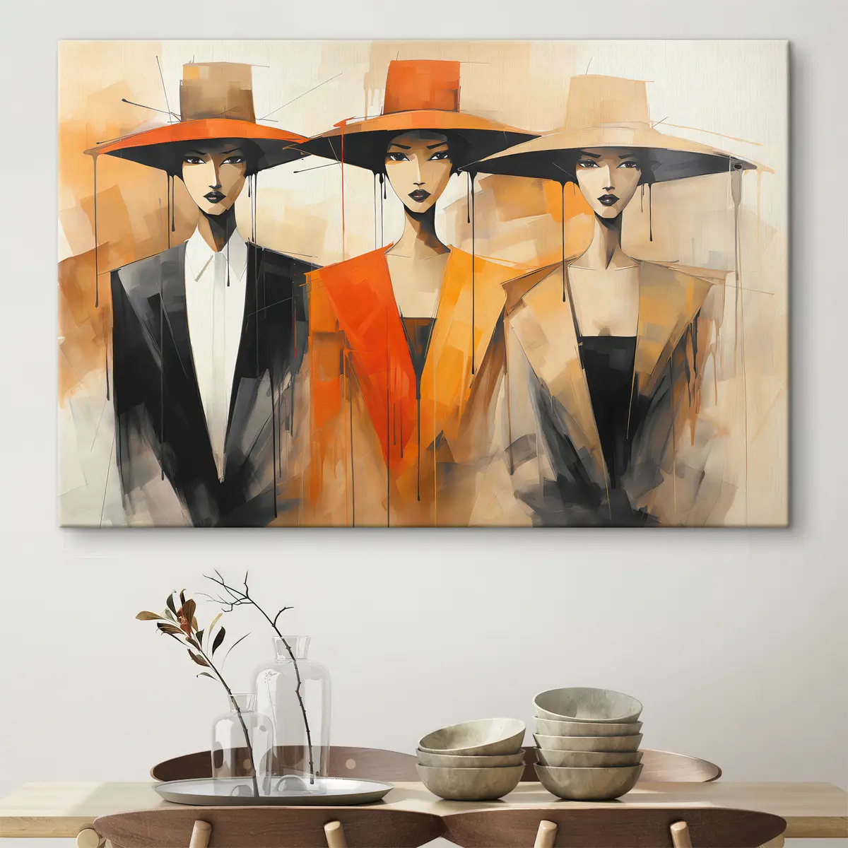 Cuadros Elegante trío con sombreros vibrantes Nr s36826