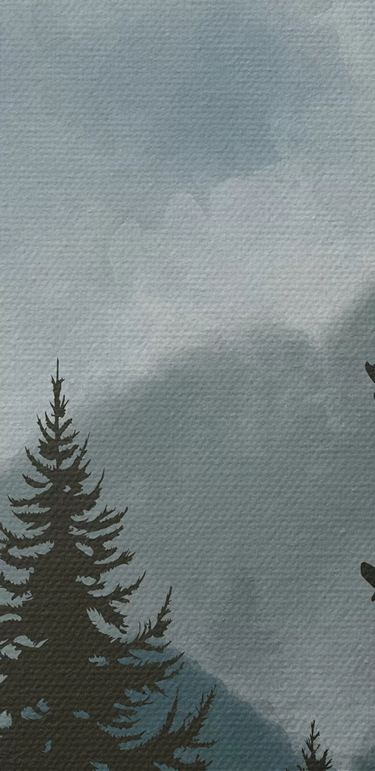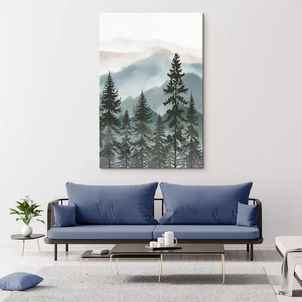 Cuadros Montañas brumosas y siluetas de pinos Nr s37017
