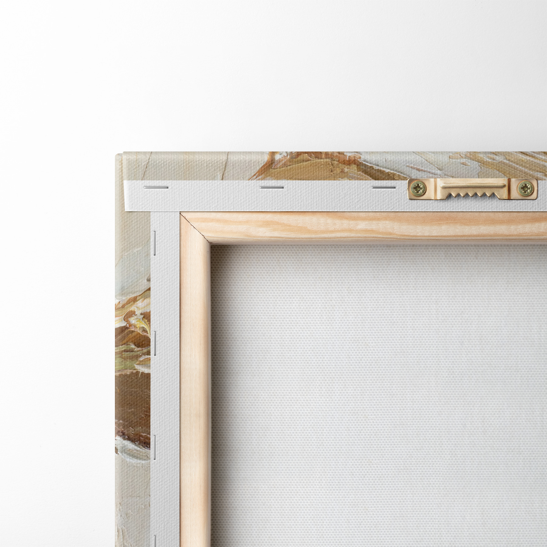 Vendemos cuadros en bastidor: se trata de un marco de madera sobre el que se extiende el lienzo. Este cuadro no necesita marco; puedes colgarlo directamente en la pared.