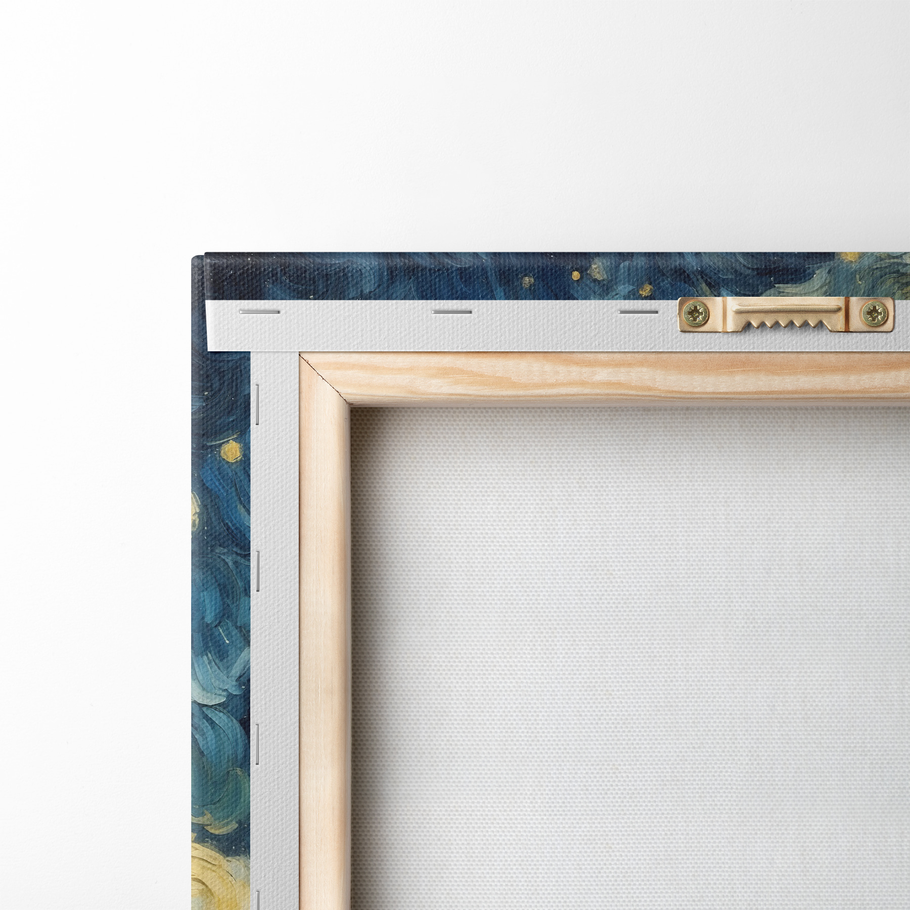 Vendemos cuadros en bastidor: se trata de un marco de madera sobre el que se extiende el lienzo. Este cuadro no necesita marco; puedes colgarlo directamente en la pared.