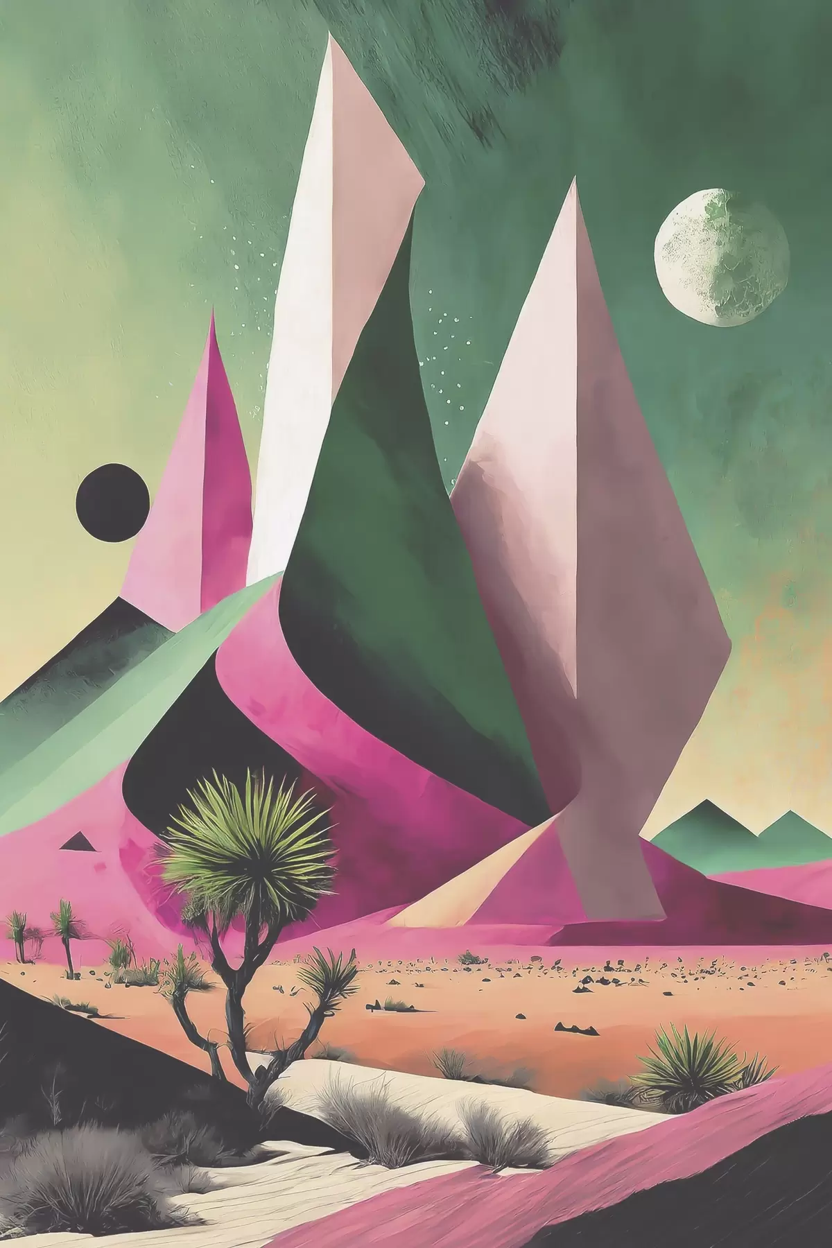 Cuadros Un paisaje desértico con árboles y montañas Nr s37360