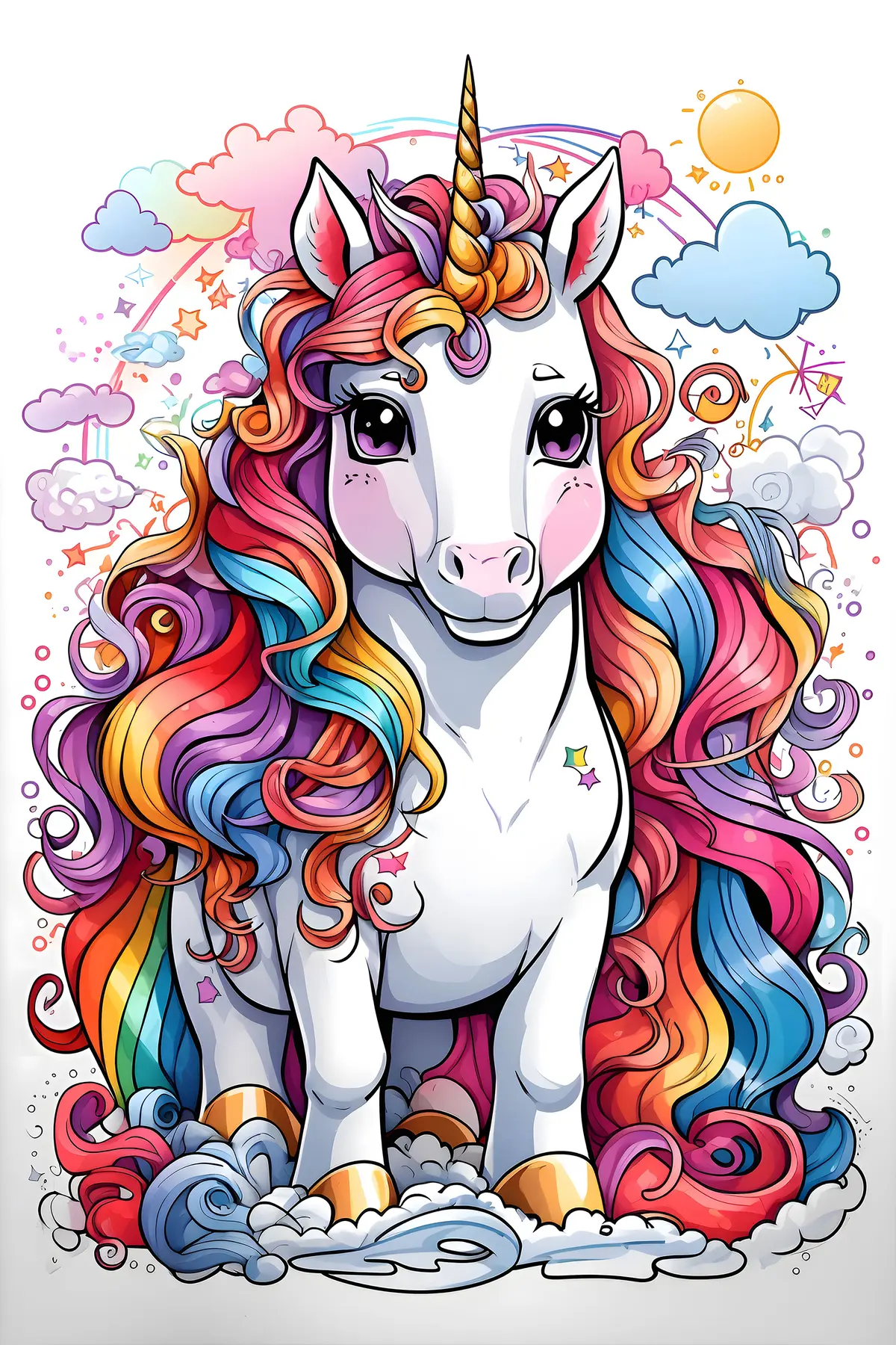 Cuadros Mágico unicornio con vibrante melena arco iris Nr s37766