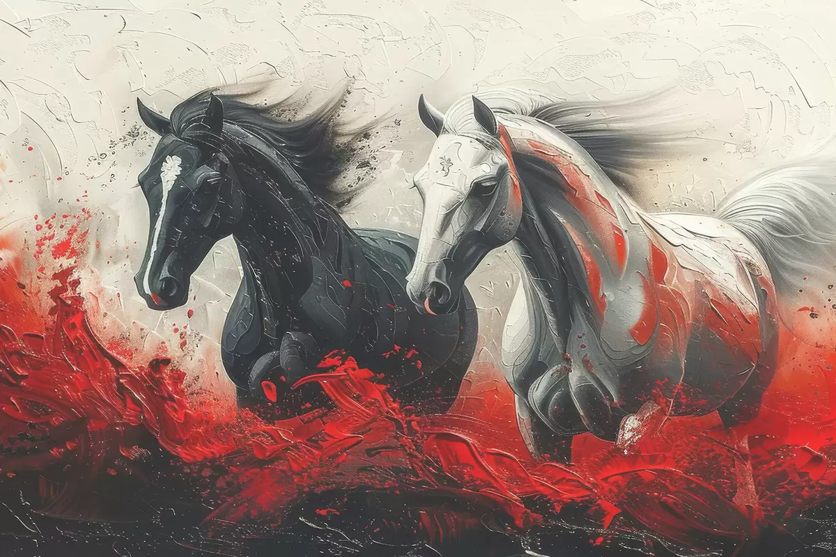 Cuadros Un cuadro de caballos corriendo con pintura roja Nr s37769