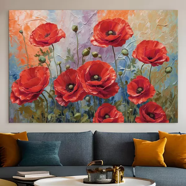 Hay tres tipos de material disponibles para pedidos: Lienzo Económico - material denso y duradero para impresión digital, idéntico al lienzo de pintor, superficie impermeable, reproducción realista de los detalles, material de grano medio. Lienzo Premium - la textura se asemeja a la de un lienzo de pintor (pequeños hilos entrelazados). Reproducción suave y detallada de la imagen sobre una superficie mate. Eco-Premium - tejido 100% algodón de alta calidad. Gracias a las fibras naturales de algodón, el material es duradero y resistente al desgaste. Excelente reproducción del color y el detalle.