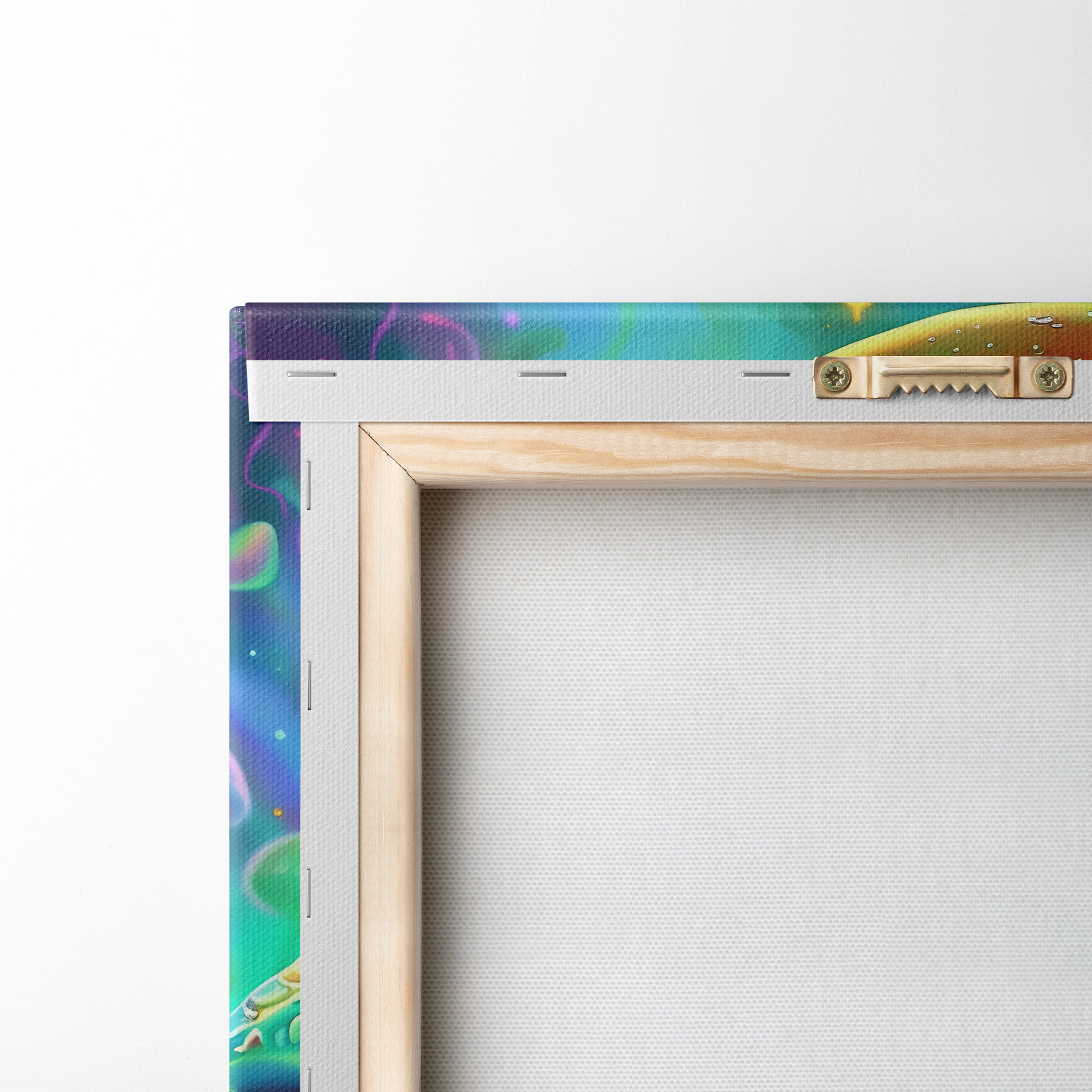 Vendemos cuadros en bastidor: se trata de un marco de madera sobre el que se extiende el lienzo. Este cuadro no necesita marco; puedes colgarlo directamente en la pared.