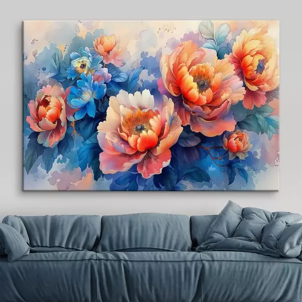 Cuadros Pintura de flores sobre fondo azul Nr s38088