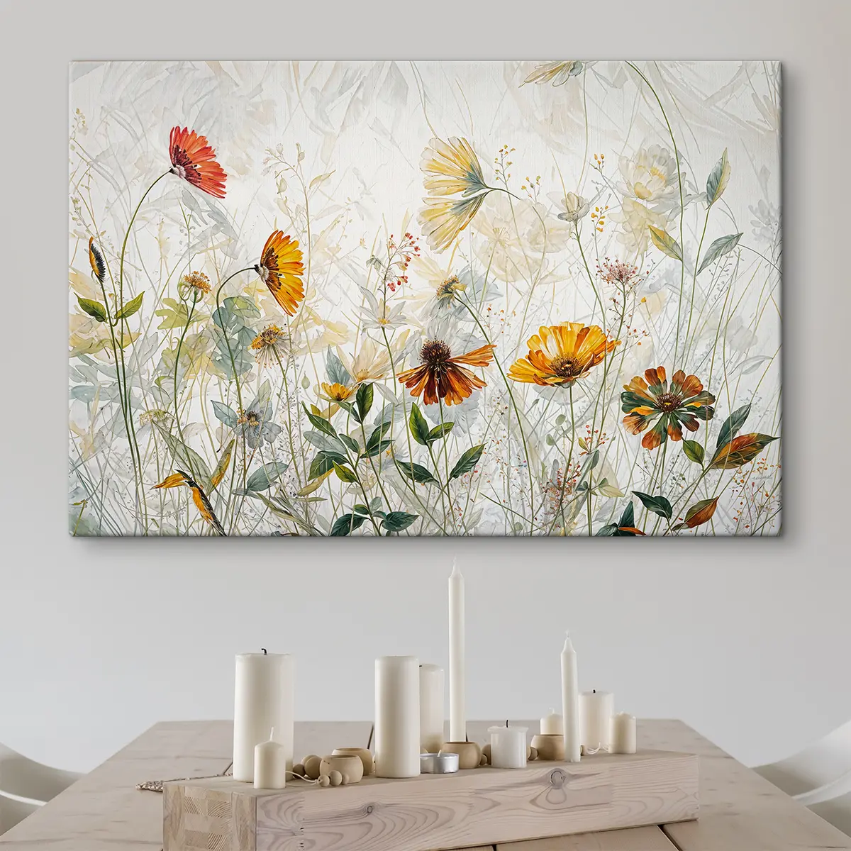 Cuadros Campo de delicadas flores sobre fondo blanco pintura al óleo Nr s38197