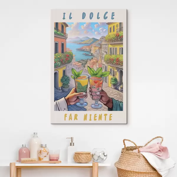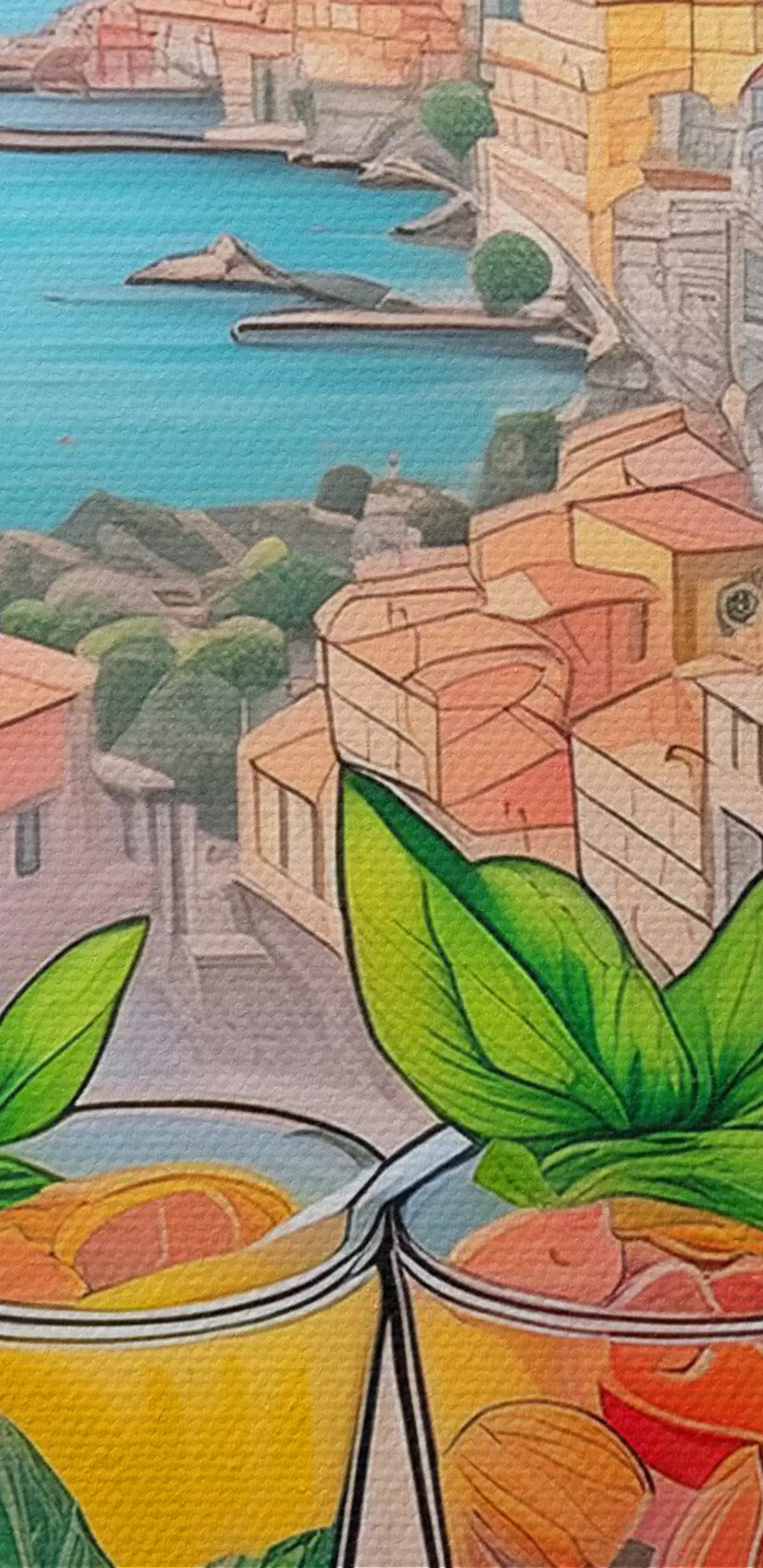 Cuadros Ciudad italiana, costa del mar, cócteles, vocación, arquitectura, verano, acuarela. Nr s38392