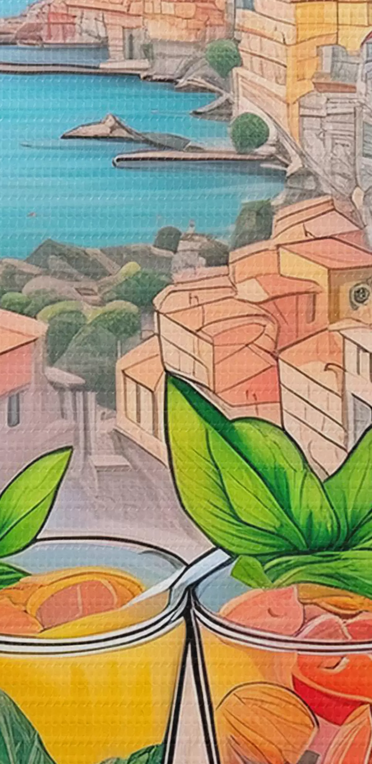 murales de pared Ciudad italiana, costa del mar, cócteles, vocación, arquitectura, verano, acuarela.  s38392