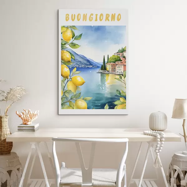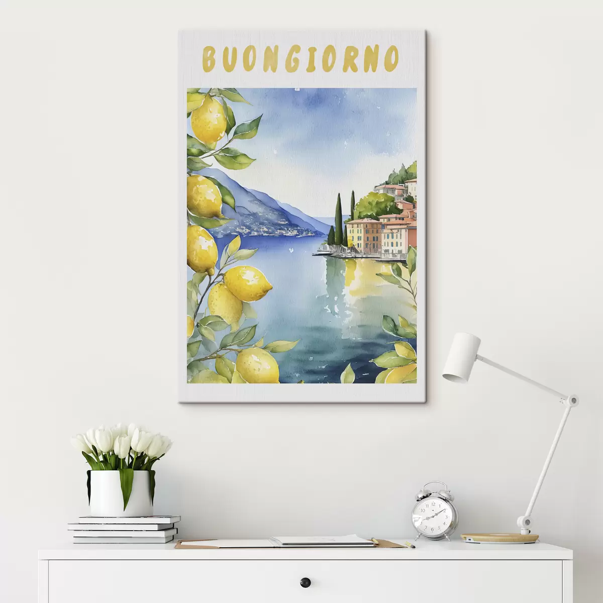 Cuadros Lago italiano, verano, acuarela, paisaje natural, limones, arquitectura de la ciudad Nr s38394