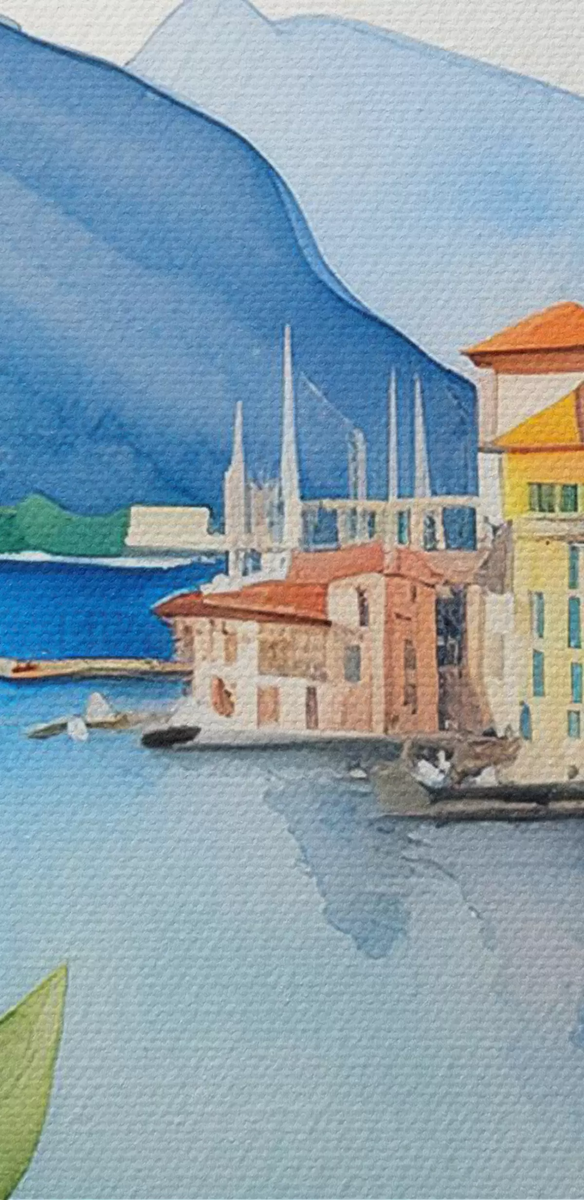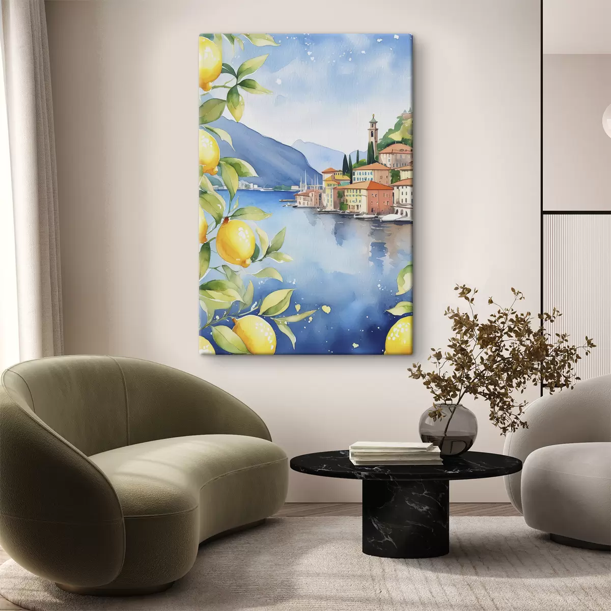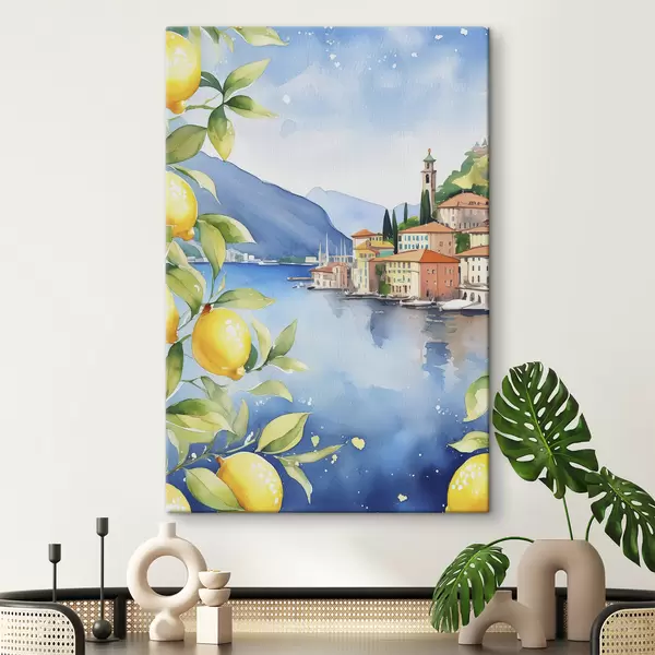 Cuadros Lago italiano, verano, acuarela, paisaje natural, limones, arquitectura de la ciudad Nr s38397