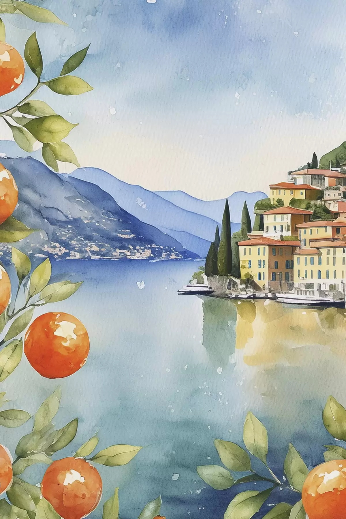 Cuadros Acuarela de un pueblo al borde de una masa de agua Nr s38402