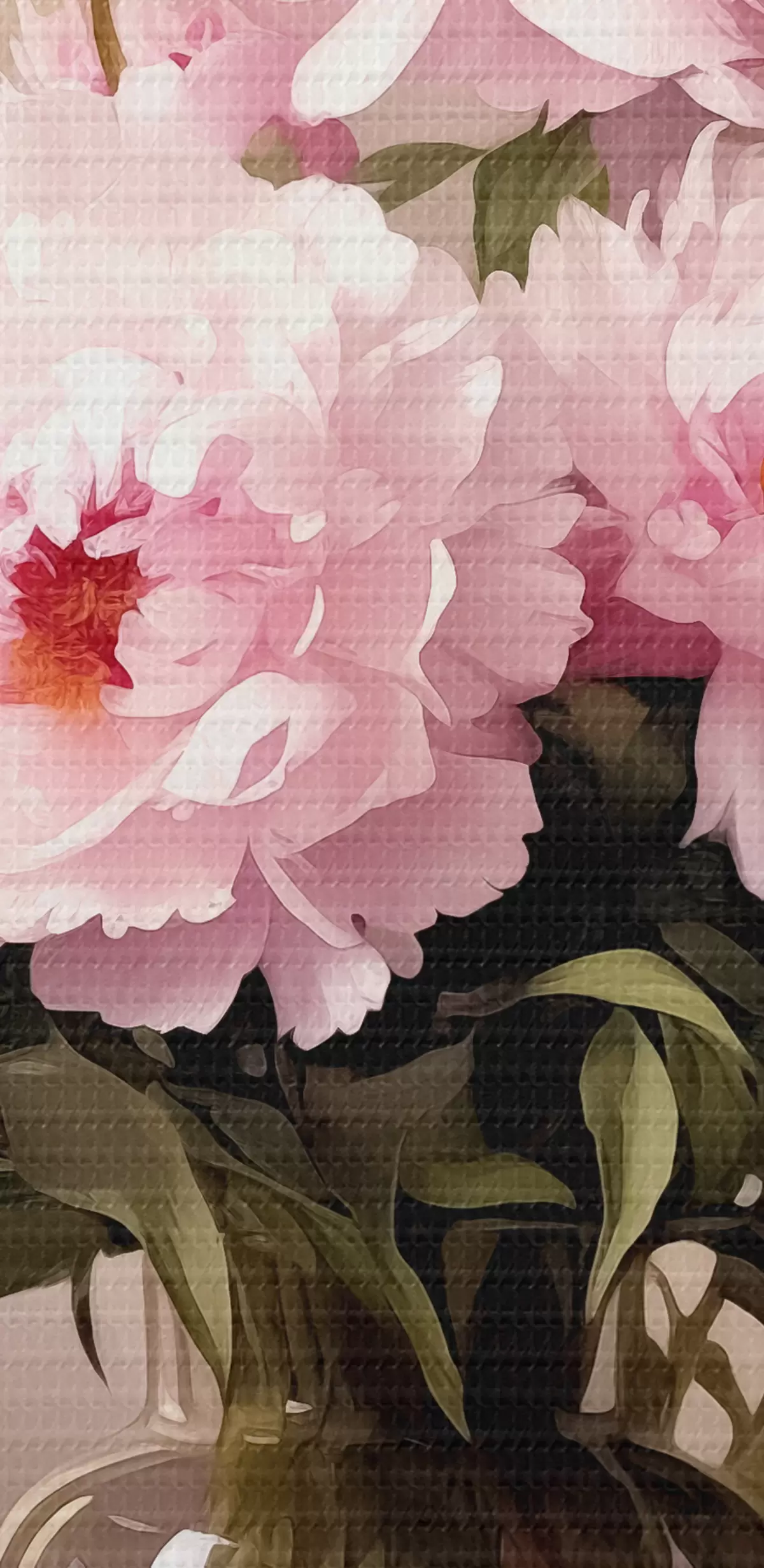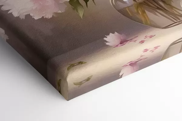 Cuadros Peonías rosas en un jarrón de cristal sobre fondo negro, pintura al óleo de imitación, flores Nr s38482