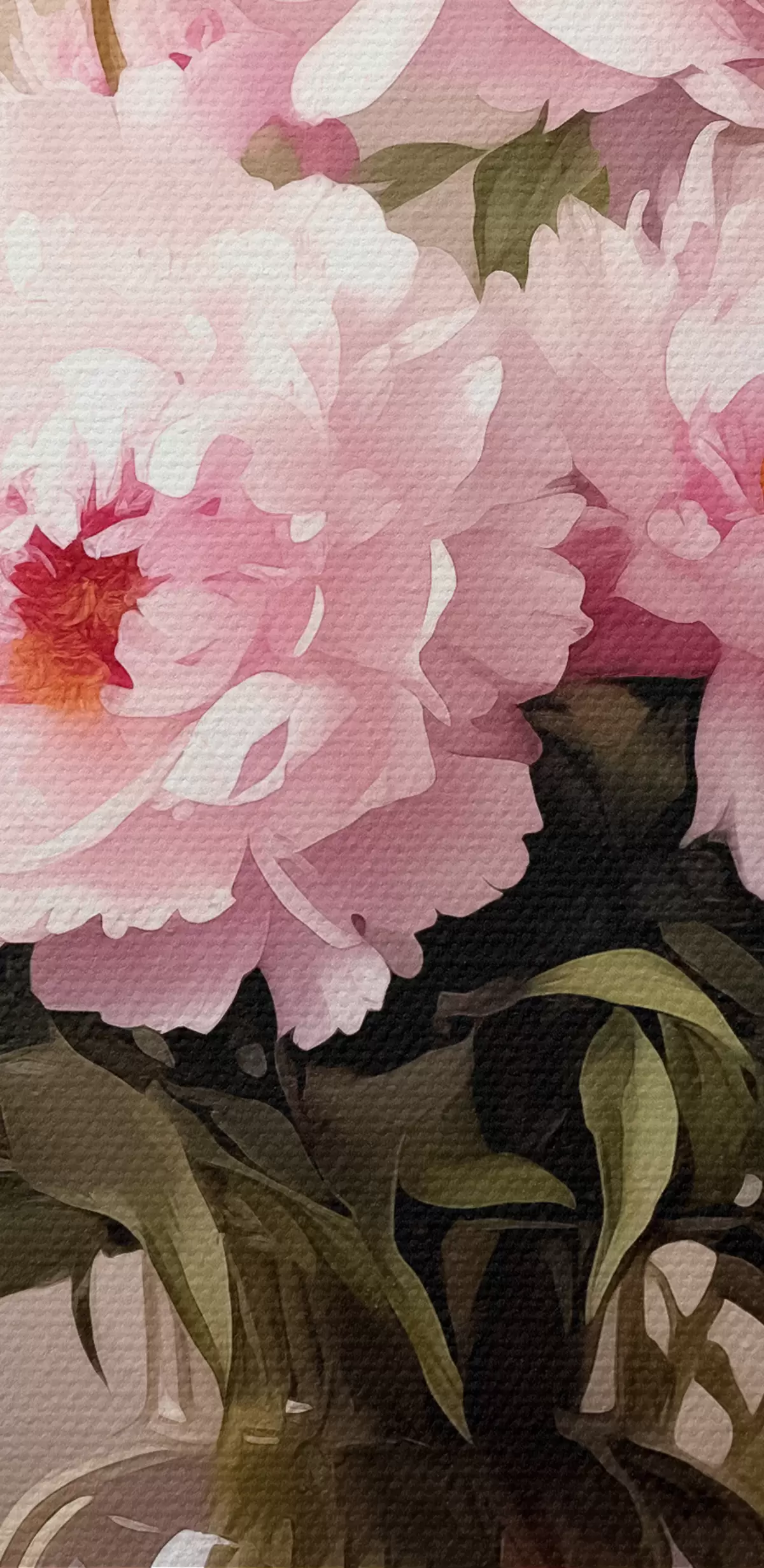 murales de pared Peonías rosas en un jarrón de cristal sobre fondo negro, pintura al óleo de imitación, flores s38482