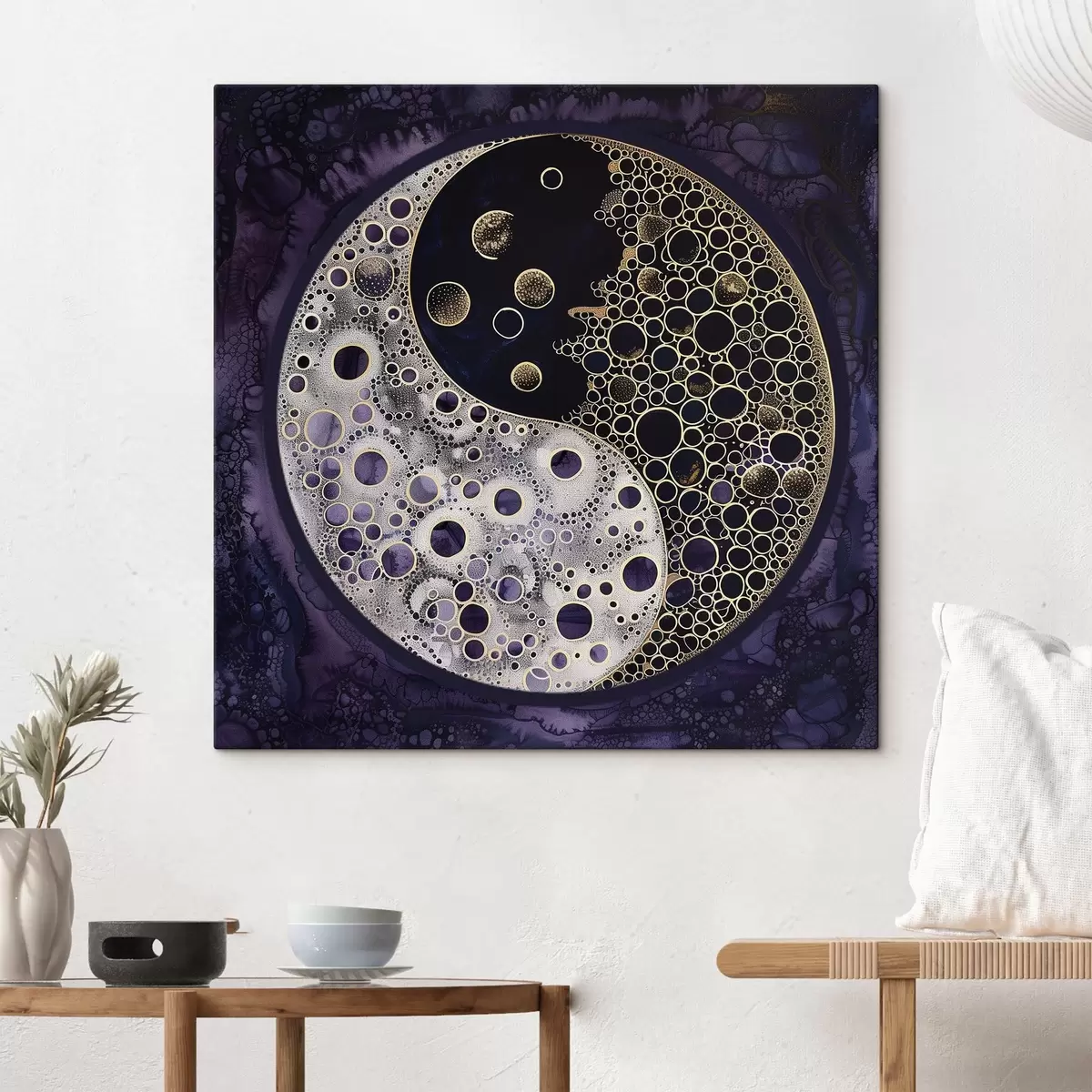 Cuadros Símbolo del yin y el yang sobre fondo morado Nr s38535
