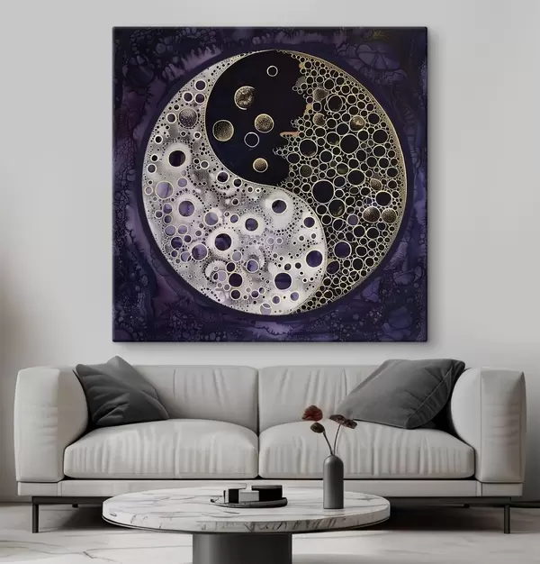 Cuadros Símbolo del yin y el yang sobre fondo morado Nr s38535