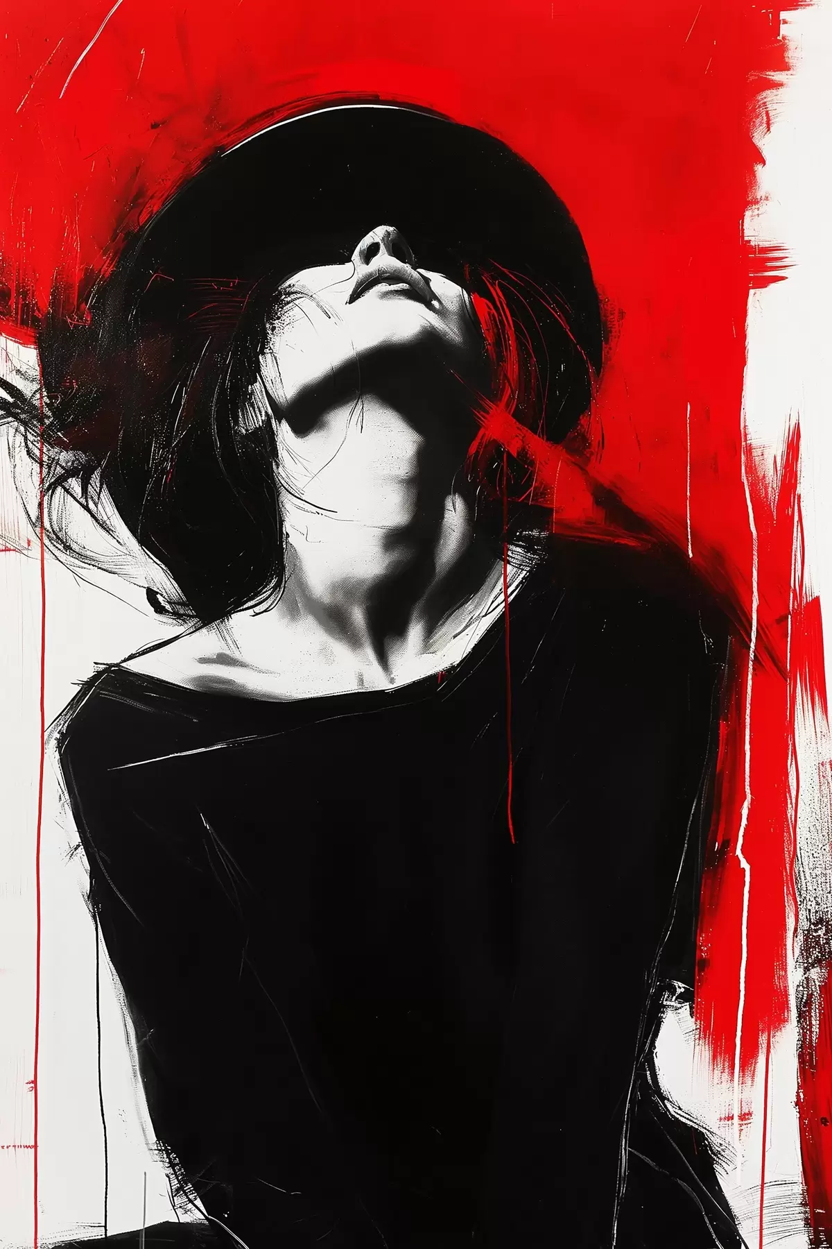 Cuadros Una mujer con sombrero negro sobre fondo rojo Nr s38561