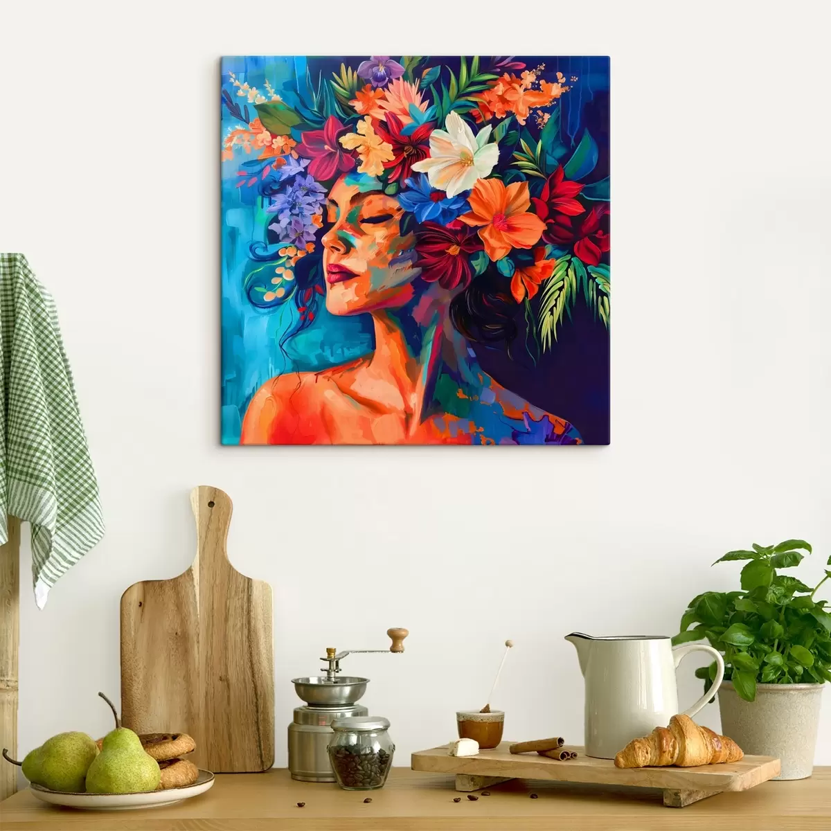 Cuadros Pintura de una mujer con flores en el pelo Nr s38574