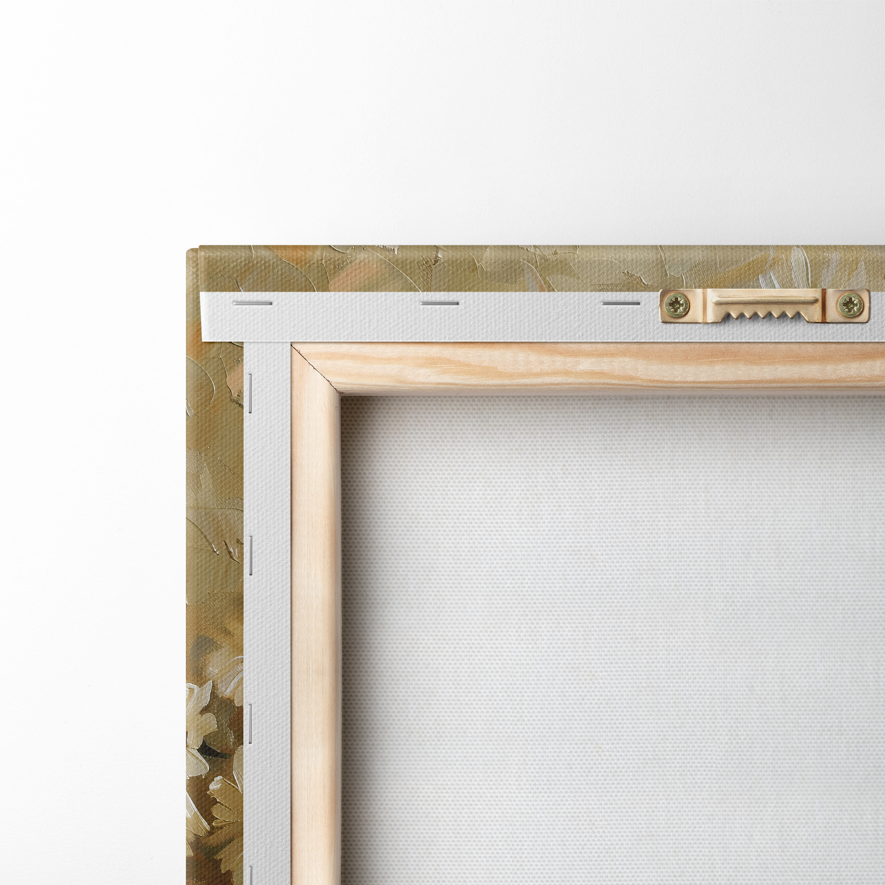 Vendemos cuadros en bastidor: se trata de un marco de madera sobre el que se extiende el lienzo. Este cuadro no necesita marco; puedes colgarlo directamente en la pared.