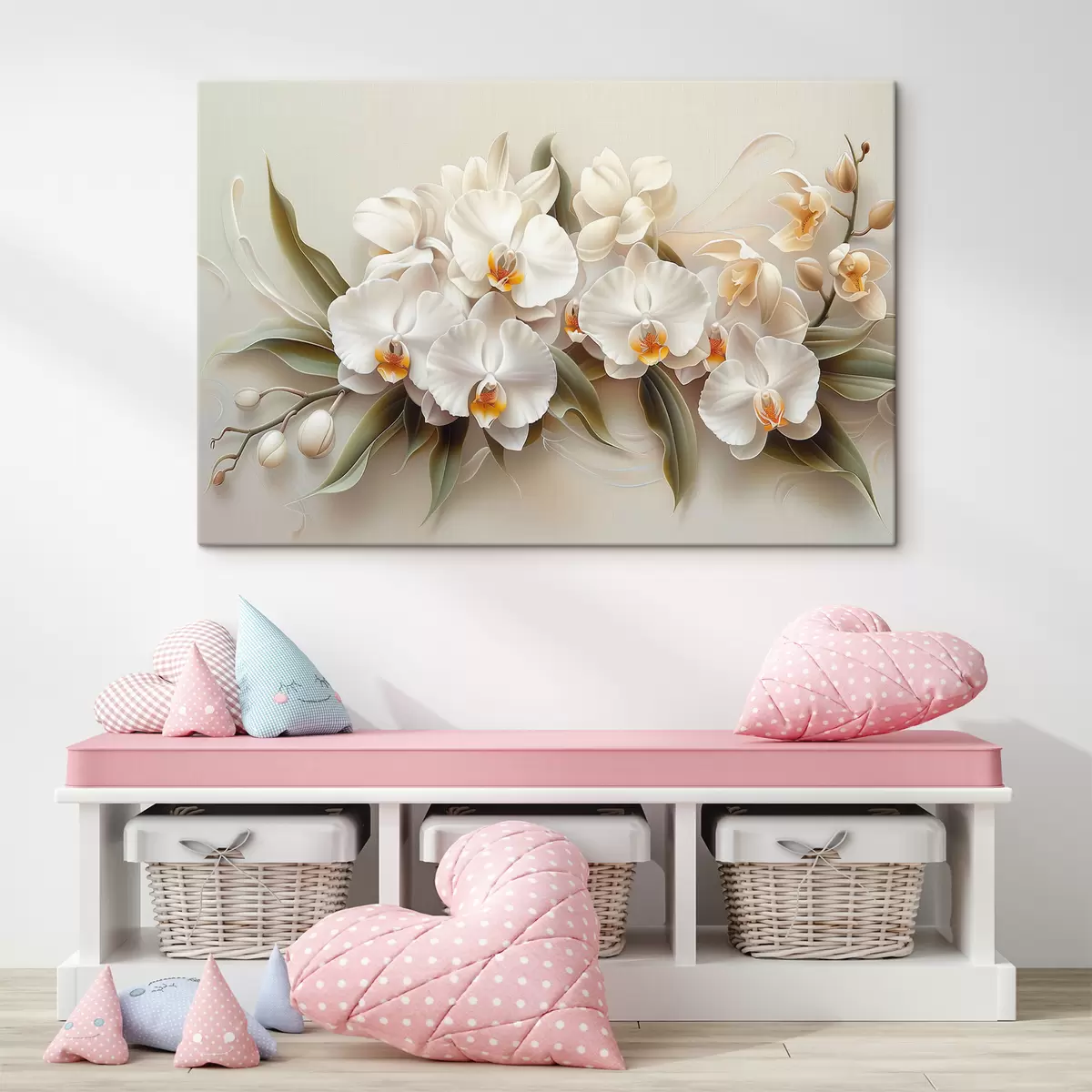 Hay tres tipos de material disponibles para pedidos: Lienzo Económico - material denso y duradero para impresión digital, idéntico al lienzo de pintor, superficie impermeable, reproducción realista de los detalles, material de grano medio. Lienzo Premium - la textura se asemeja a la de un lienzo de pintor (pequeños hilos entrelazados). Reproducción suave y detallada de la imagen sobre una superficie mate. Eco-Premium - tejido 100% algodón de alta calidad. Gracias a las fibras naturales de algodón, el material es duradero y resistente al desgaste. Excelente reproducción del color y el detalle.