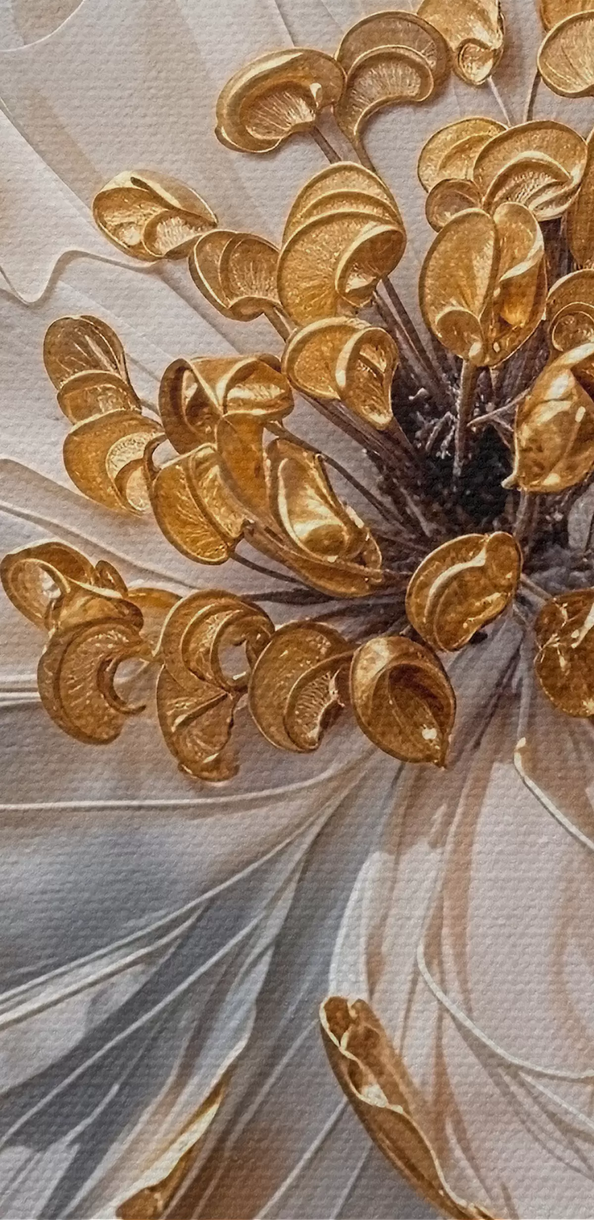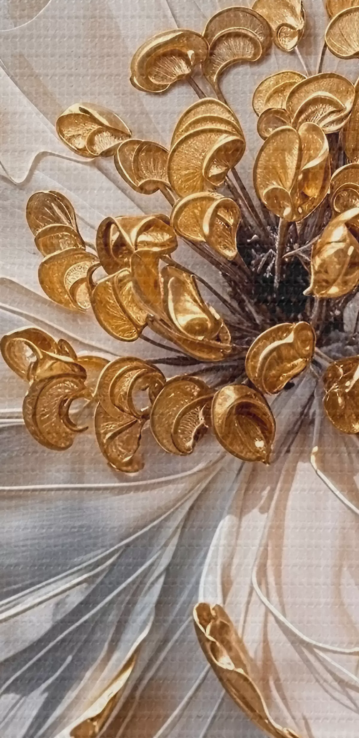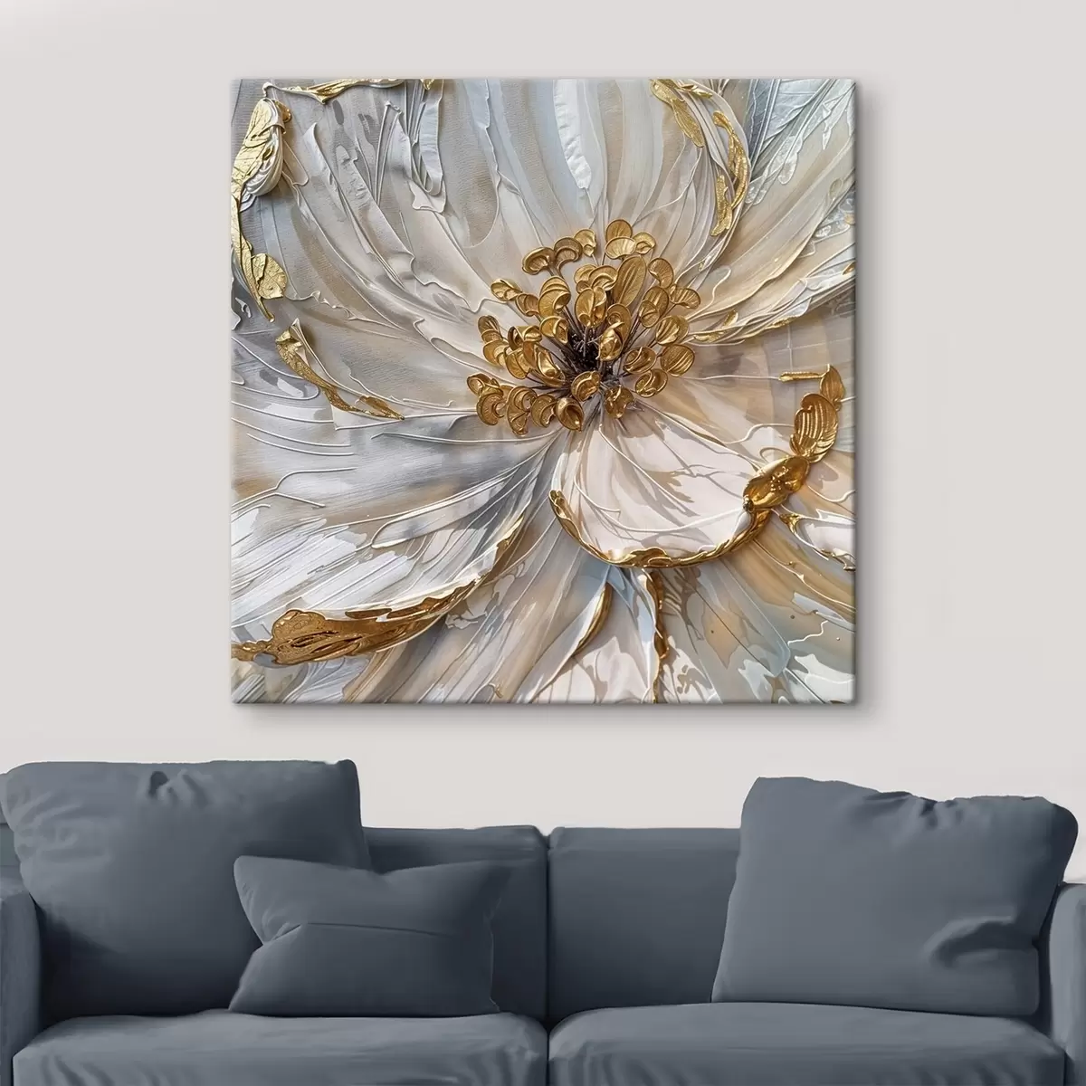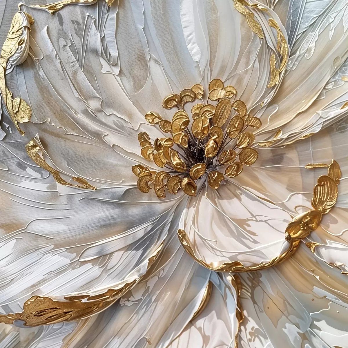 Cuadros Primer plano de una gran flor blanca con estambres amarillos en el centro, decoración artística pintada al óleo Nr s38755