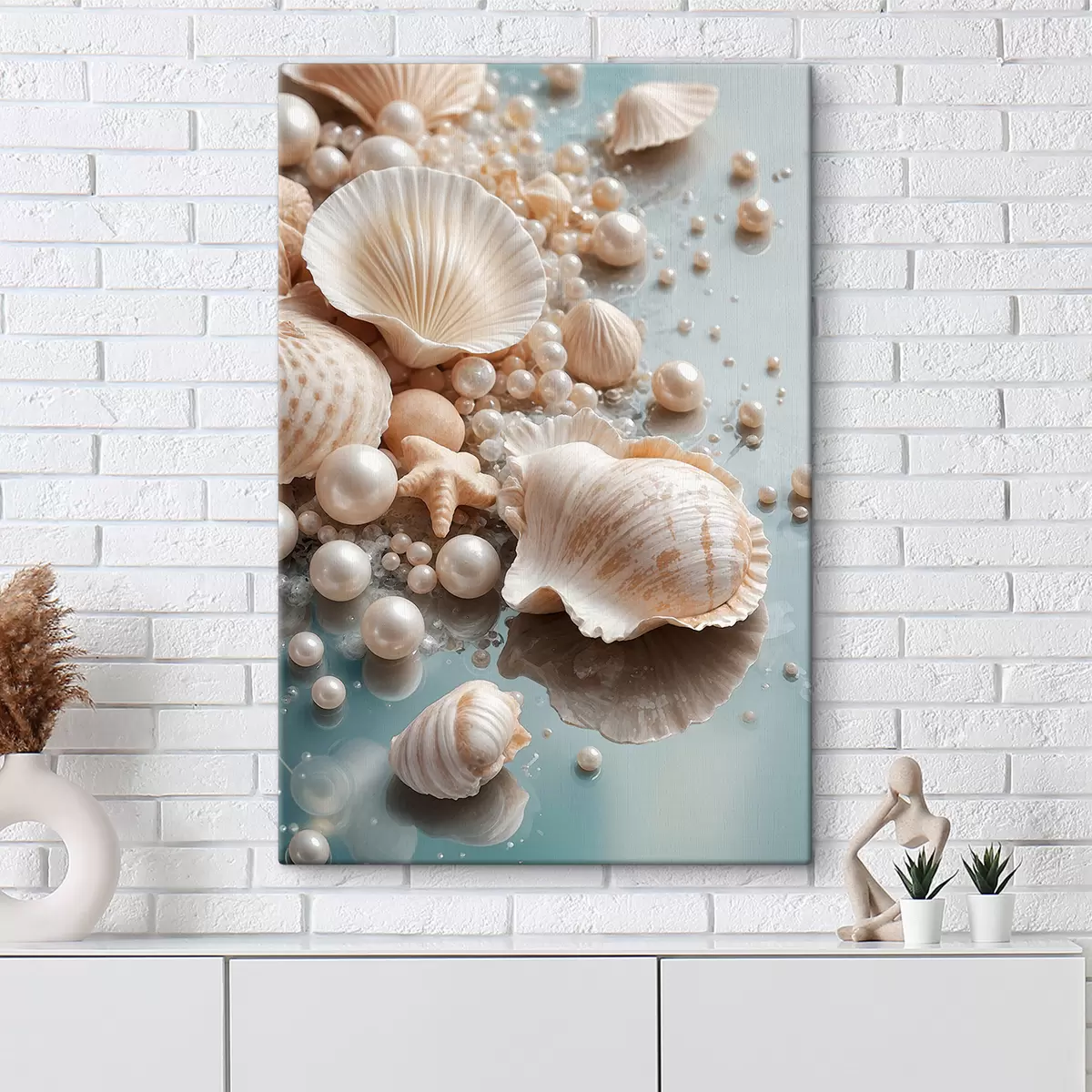 Cuadros Surtido de conchas y perlas sobre un fondo azul claro Nr s38769