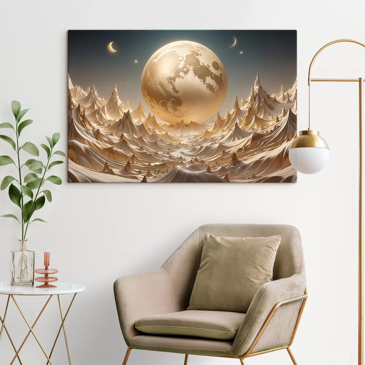Cuadros Luna llena resplandeciente sobre un paisaje montañoso surrealista con picos Nr s38775