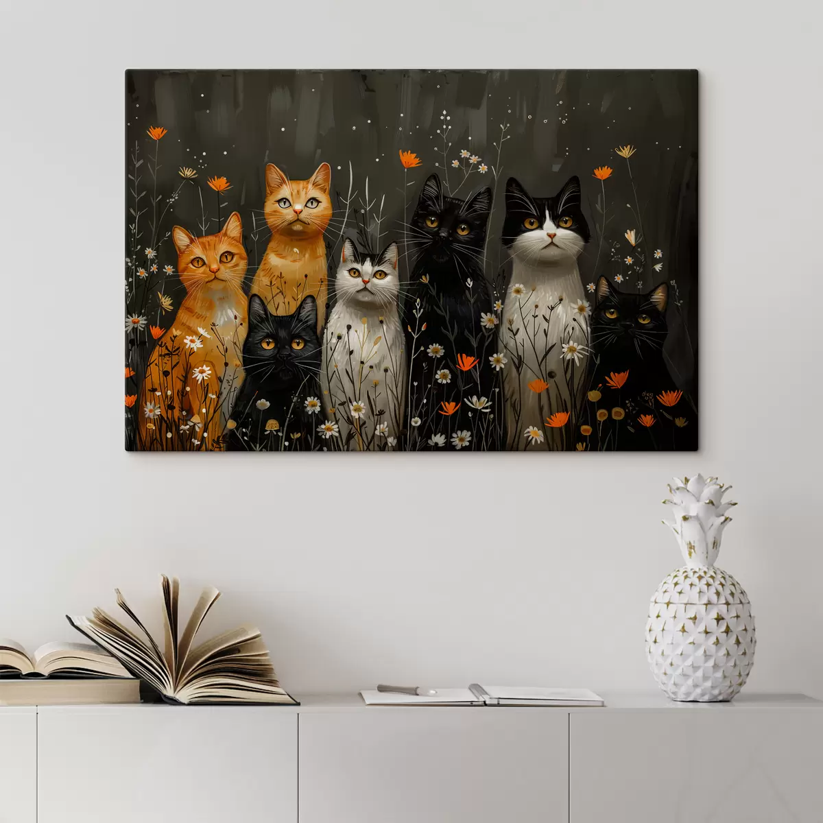 murales de pared gatos en flores s38798