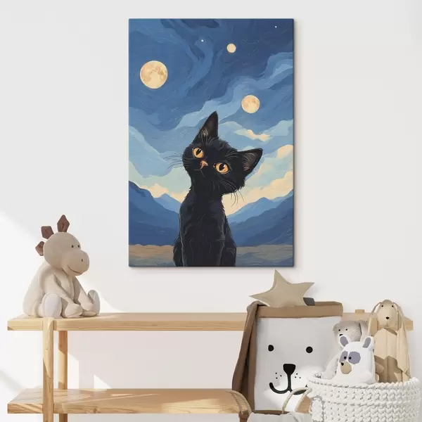 Cuadros Gato curioso bajo un cielo estrellado Nr s38860
