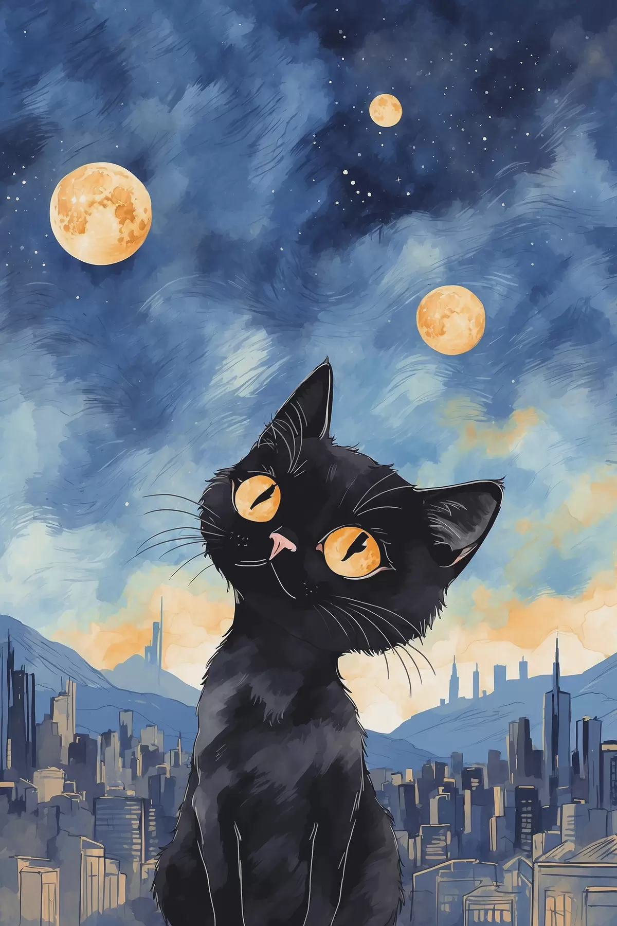 murales de pared Gato sobre un fondo de ciudad s38861
