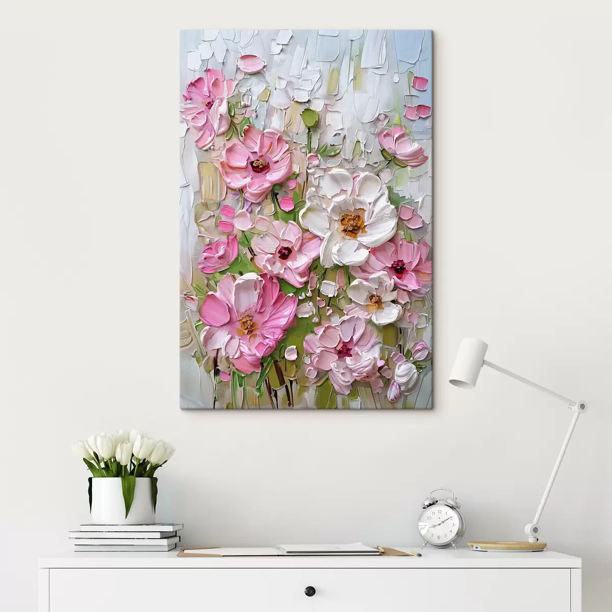 Hay tres tipos de material disponibles para pedidos: Lienzo Económico - material denso y duradero para impresión digital, idéntico al lienzo de pintor, superficie impermeable, reproducción realista de los detalles, material de grano medio. Lienzo Premium - la textura se asemeja a la de un lienzo de pintor (pequeños hilos entrelazados). Reproducción suave y detallada de la imagen sobre una superficie mate. Eco-Premium - tejido 100% algodón de alta calidad. Gracias a las fibras naturales de algodón, el material es duradero y resistente al desgaste. Excelente reproducción del color y el detalle.