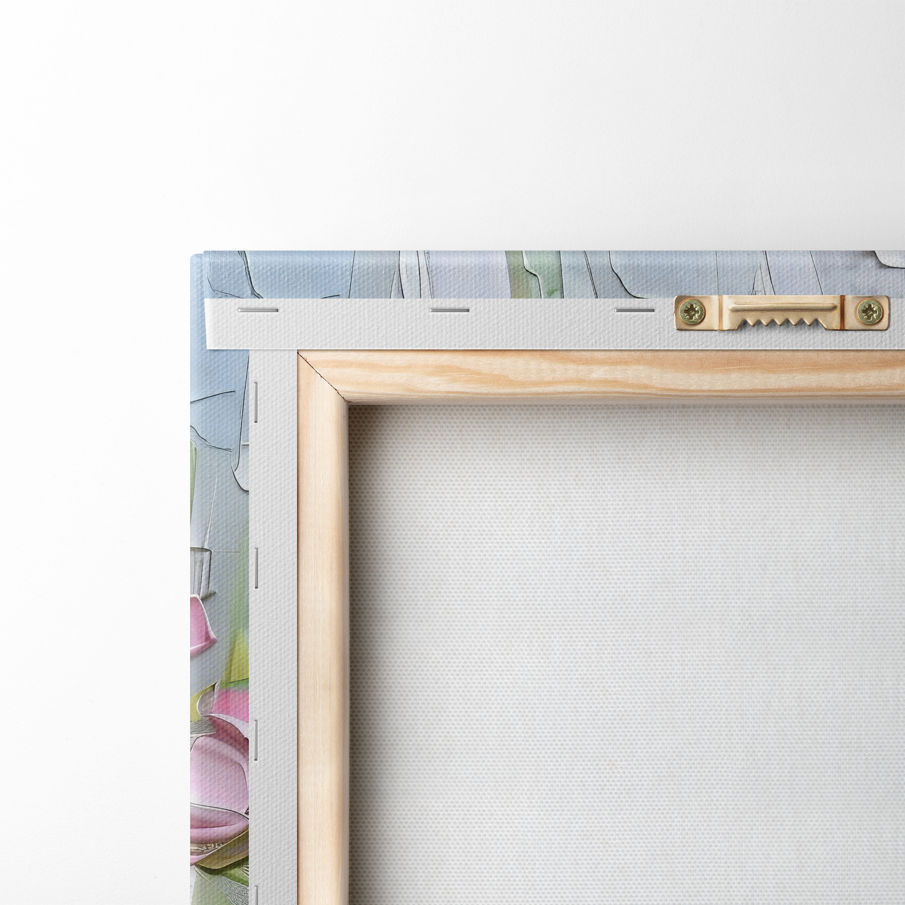 Vendemos cuadros en bastidor: se trata de un marco de madera sobre el que se extiende el lienzo. Este cuadro no necesita marco; puedes colgarlo directamente en la pared.