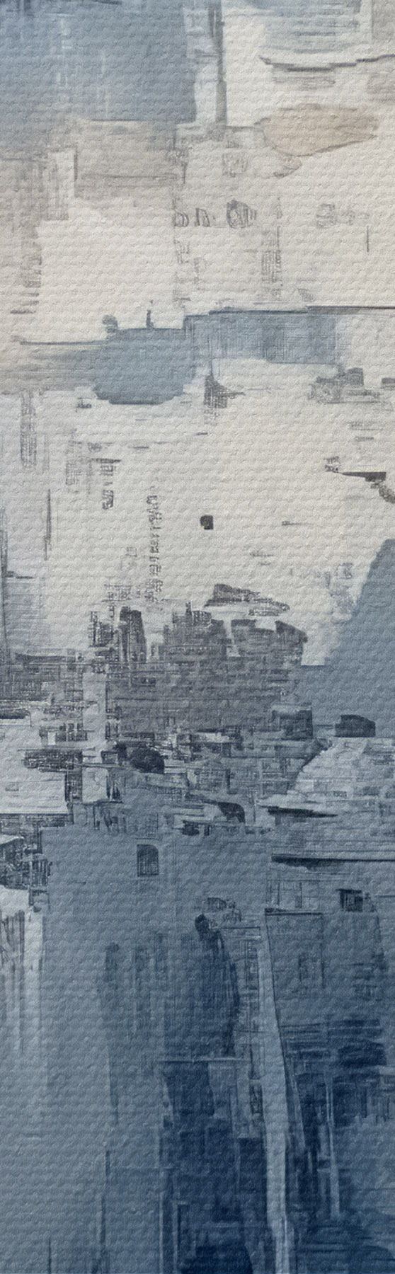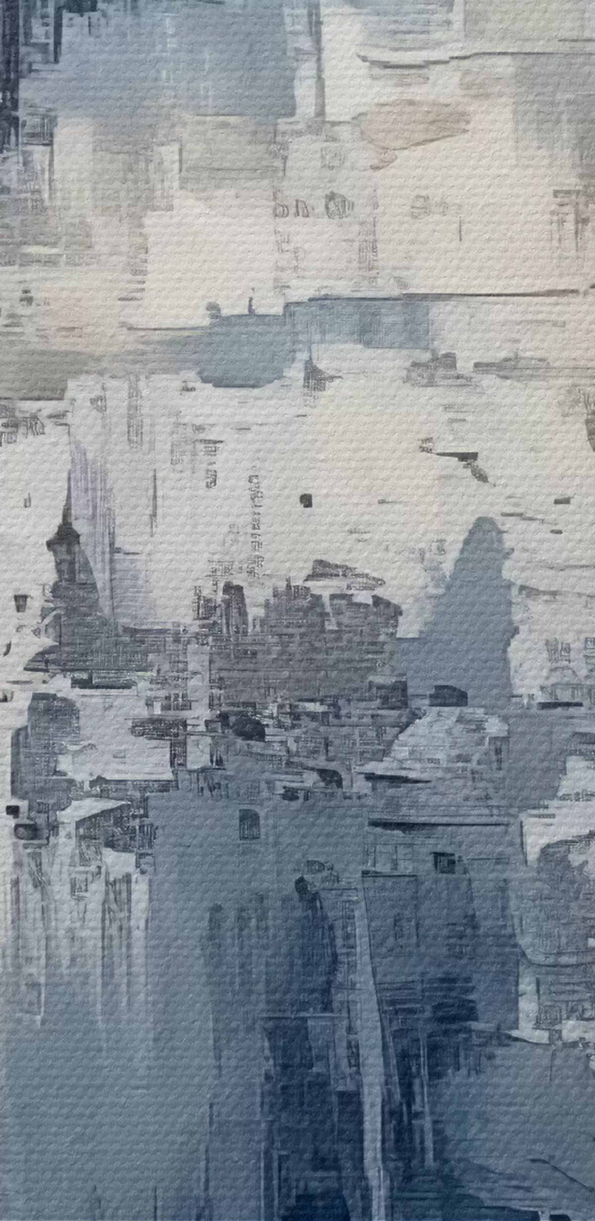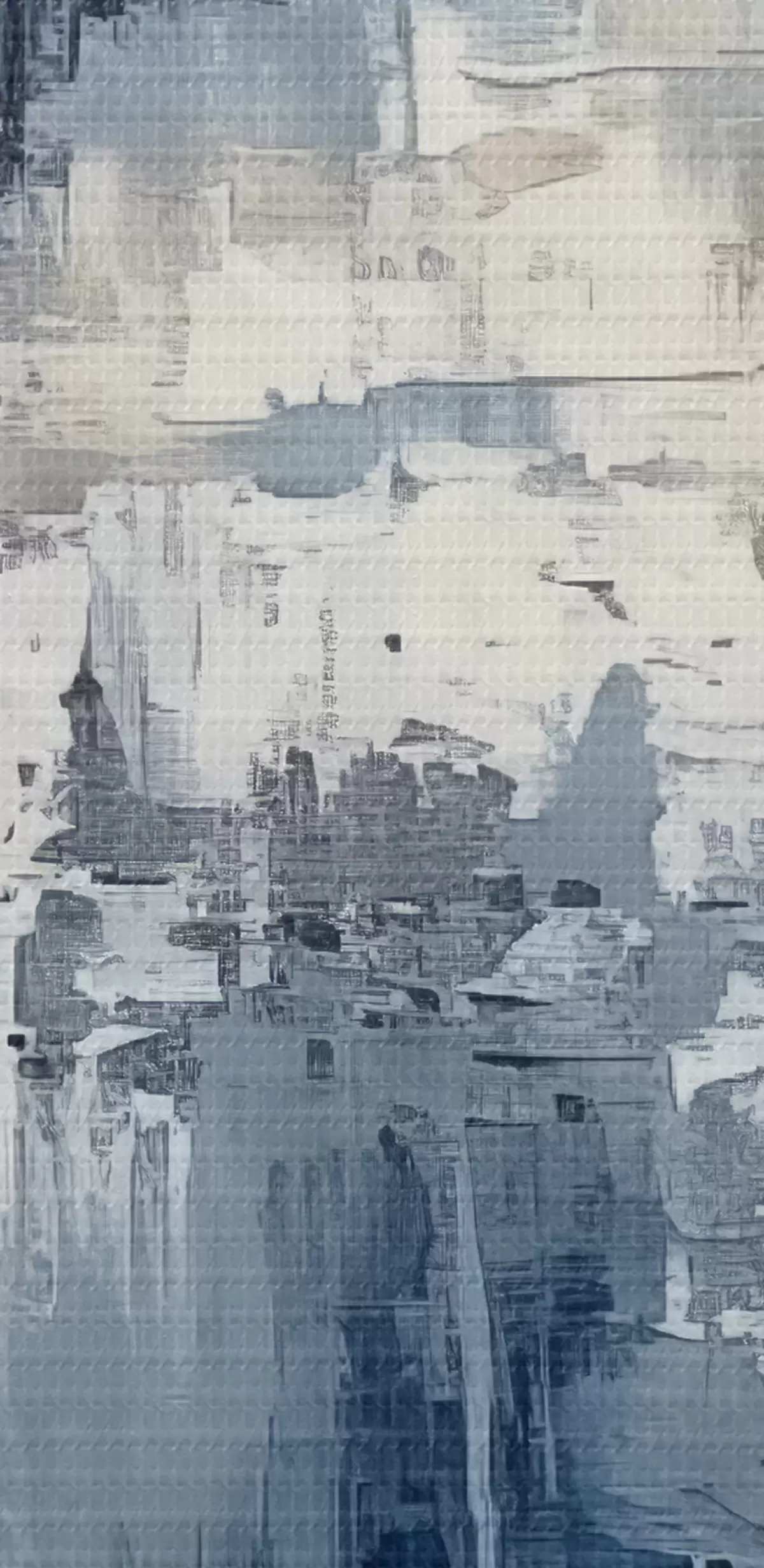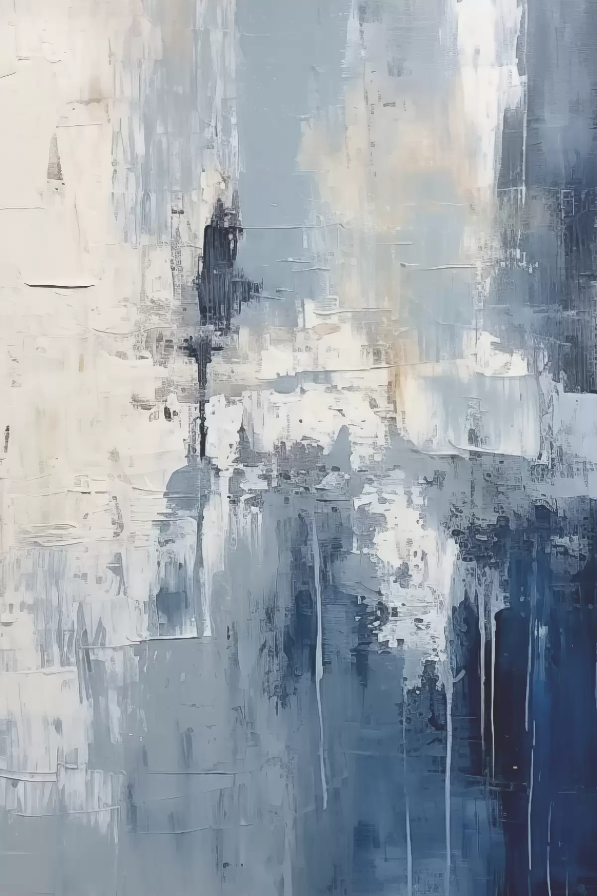 murales de pared Pintura al óleo minimalista abstracta, frotada, geométrica, mancha, color azul y blanco. s38906