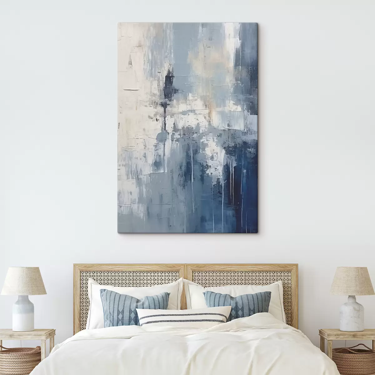 Cuadros Pintura al óleo minimalista abstracta, frotada, geométrica, mancha, color azul y blanco. Nr s38906