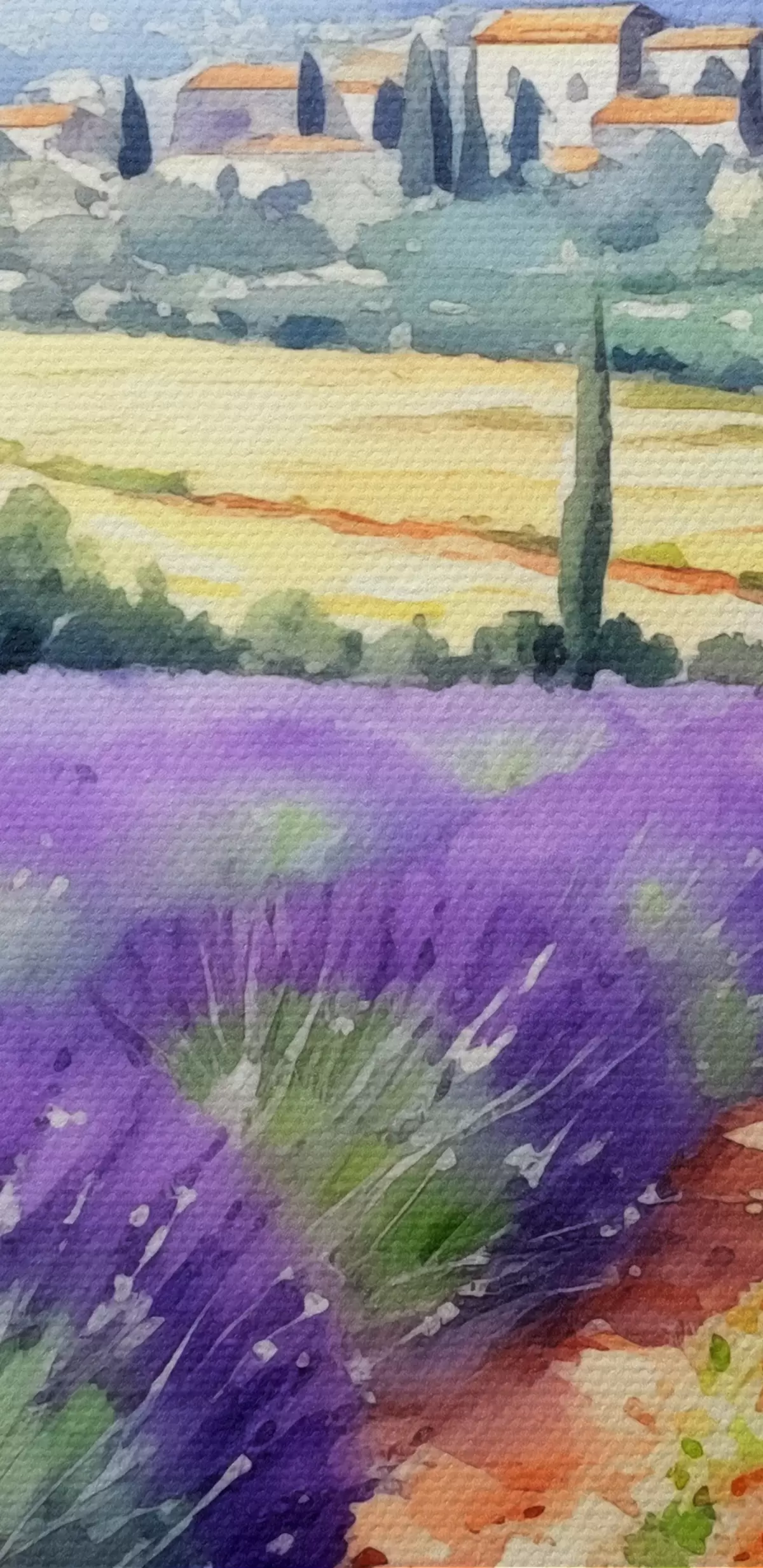 Cuadros Campo de lavanda acuarela sobre un fondo de montañas y campo Nr s38913