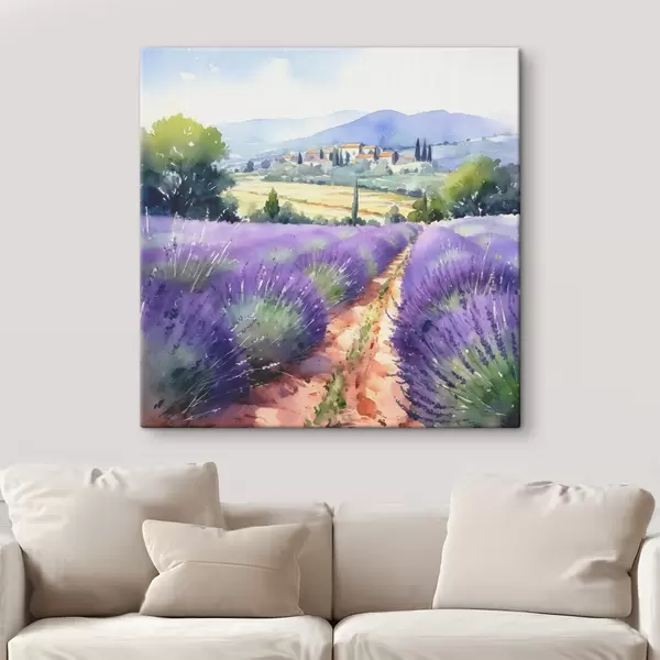 Cuadros Campo de lavanda acuarela sobre un fondo de montañas y campo Nr s38913