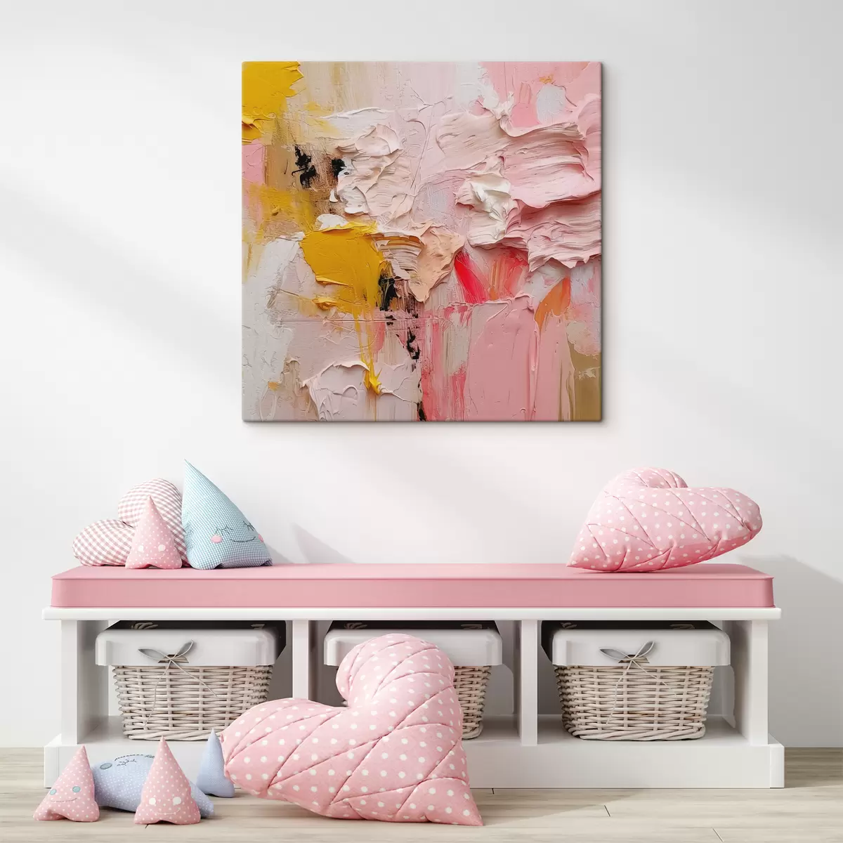 Cuadros Expresionismo abstracto de grandes pinceladas en rosa, amarillo y blanco. Nr s38916