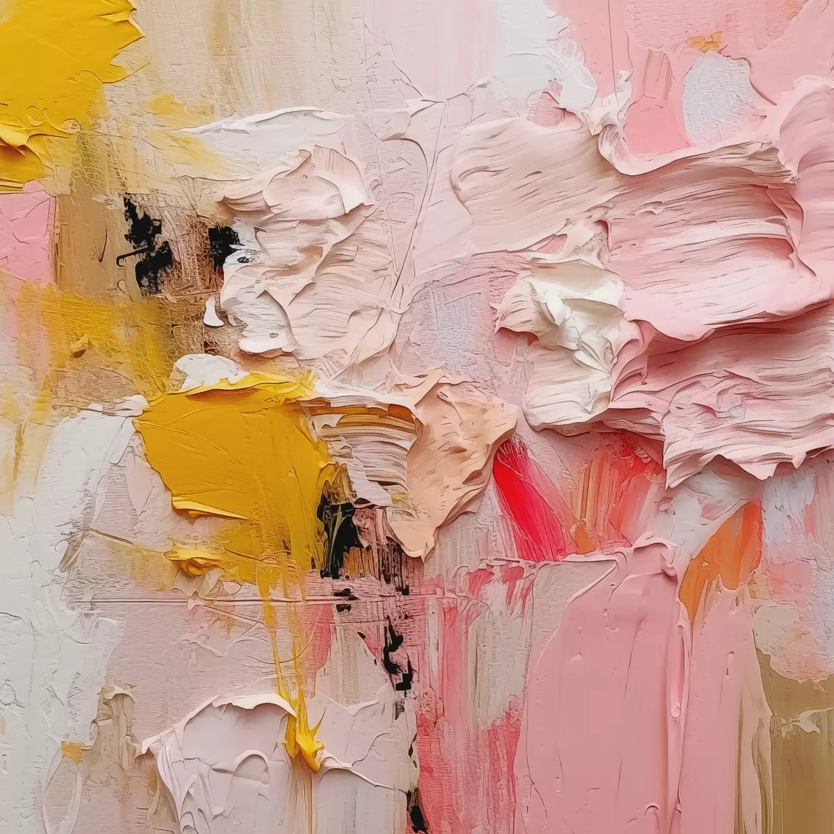 Cuadros Expresionismo abstracto de grandes pinceladas en rosa, amarillo y blanco. Nr s38916