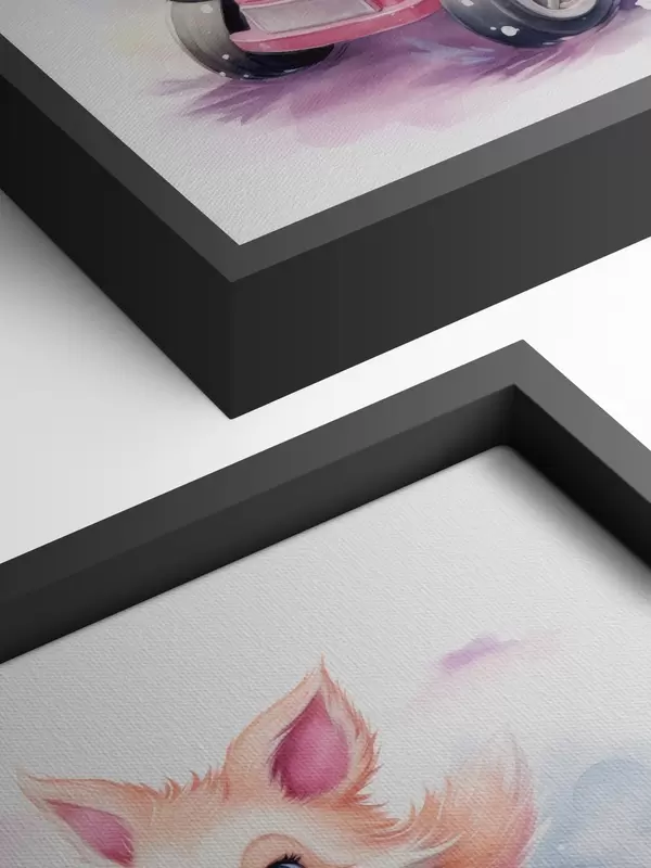 Cuadros Zorrito monta un coche rosa ilustración infantil en acuarela Nr s38943