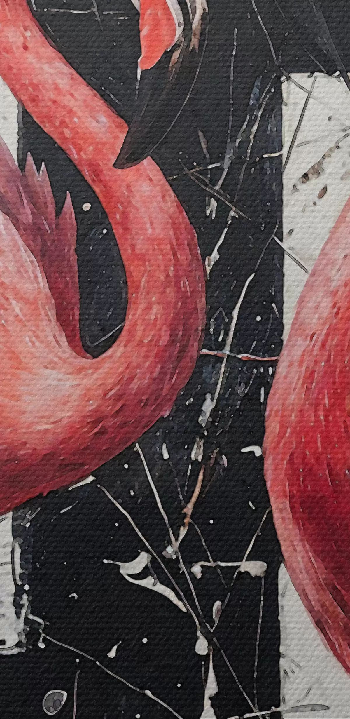 Cuadros Dos flamencos rosados parados frente a una pintura de arte de fondo abstracto en blanco y negro Nr s38954