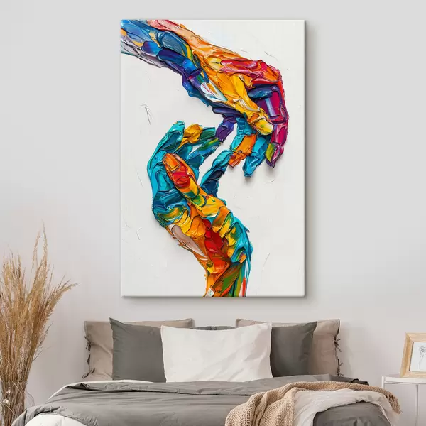 Cuadros Manos de pintura al óleo empastadas abstractas y coloridas con pinceladas vibrantes de pintura azul, naranja, amarilla y roja Nr s38955
