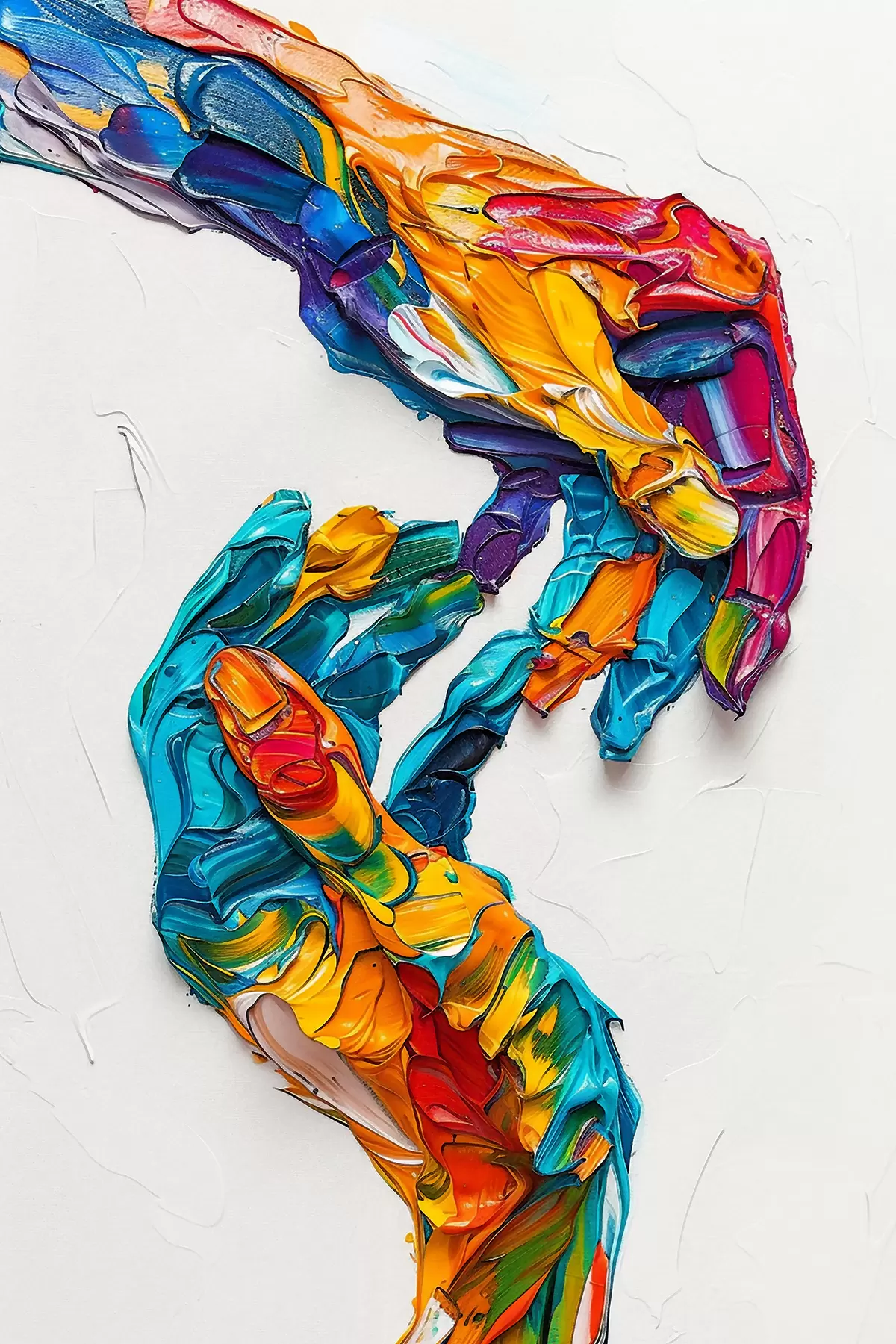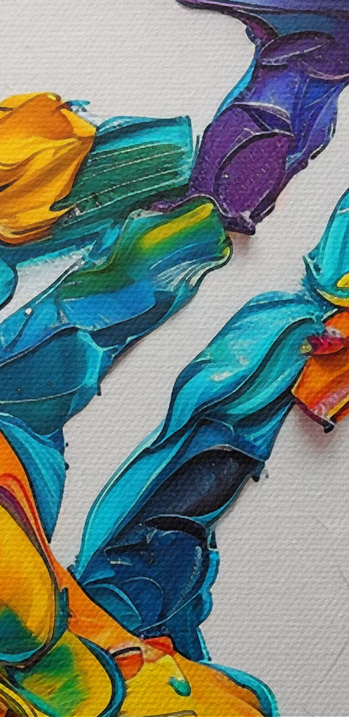 Cuadros Manos de pintura al óleo empastadas abstractas y coloridas con pinceladas vibrantes de pintura azul, naranja, amarilla y roja Nr s38955