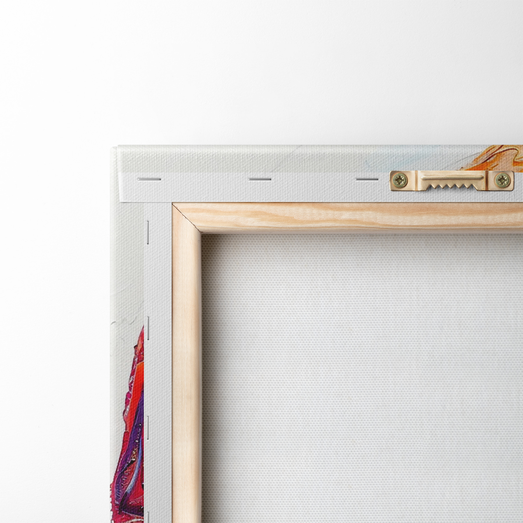 Vendemos cuadros en bastidor: se trata de un marco de madera sobre el que se extiende el lienzo. Este cuadro no necesita marco; puedes colgarlo directamente en la pared.
