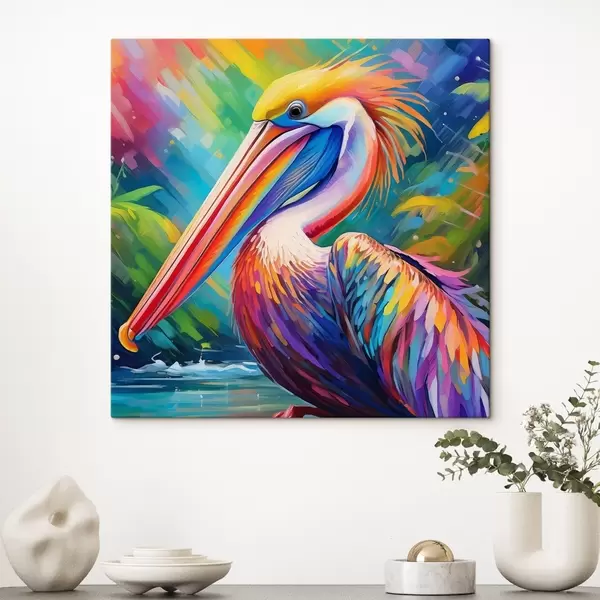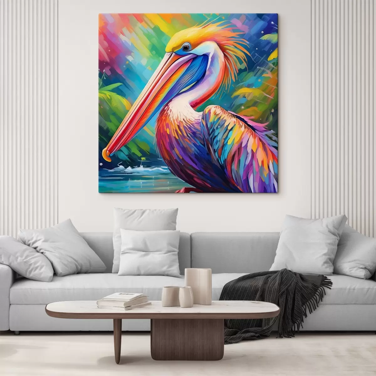 Cuadros Vibrante pelícano sobre un colorido fondo Nr s39054