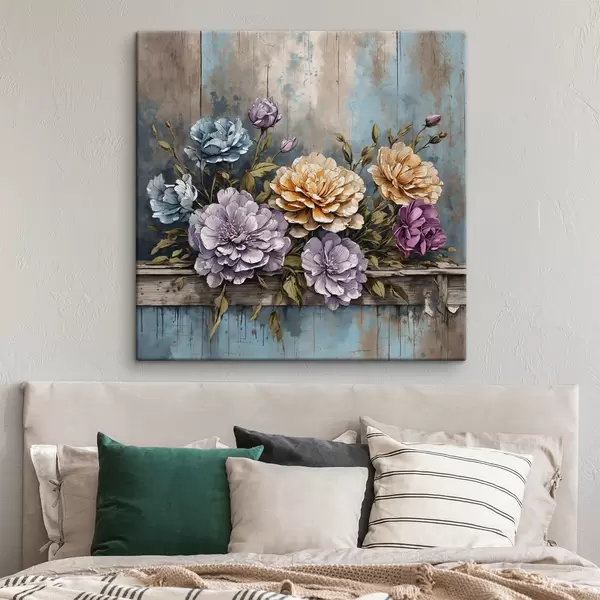 Cuadros Flores y hojas en una vieja estantería de madera Nr s39169