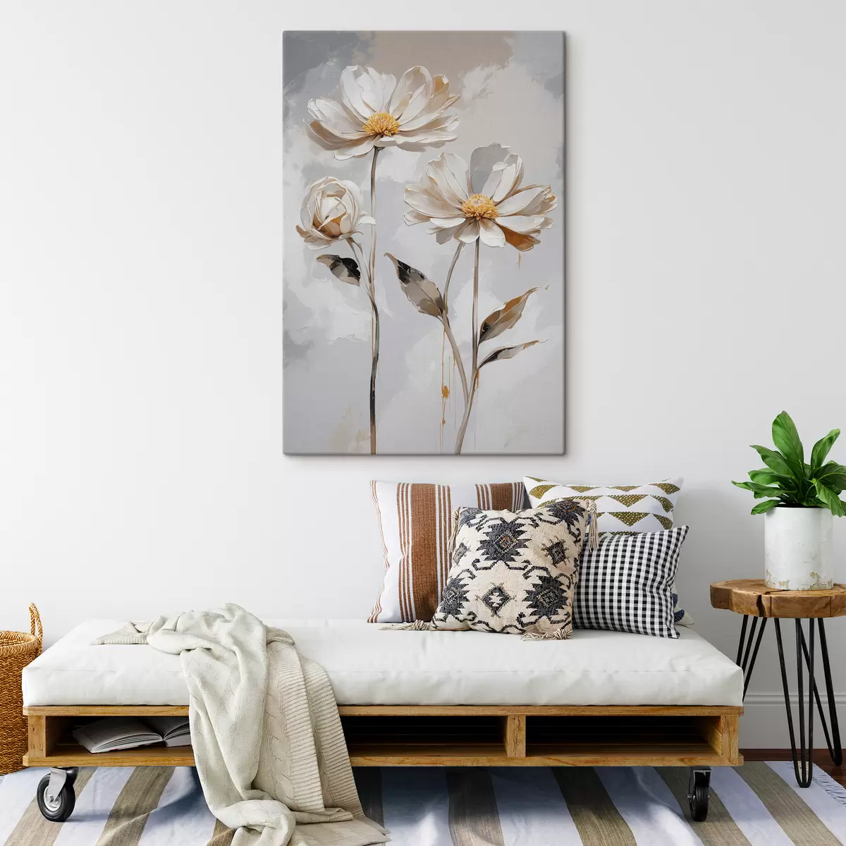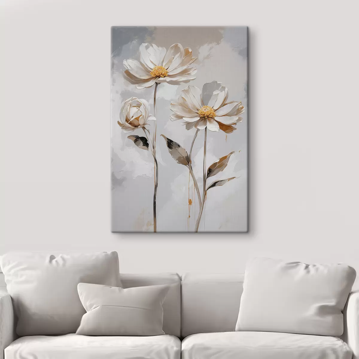 Cuadros Flores blancas sobre fondo blanco-gris. Nr s39174